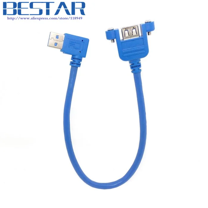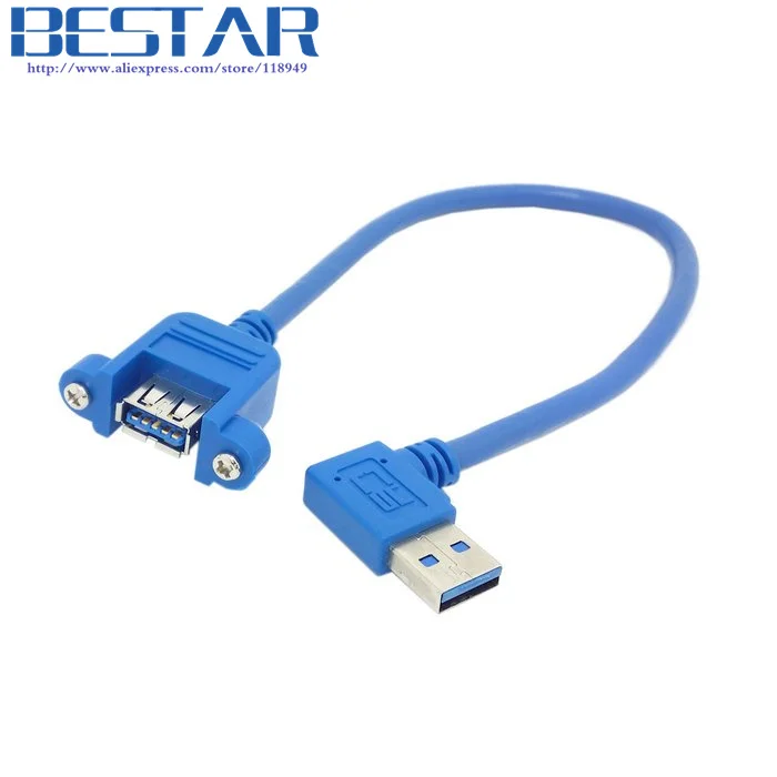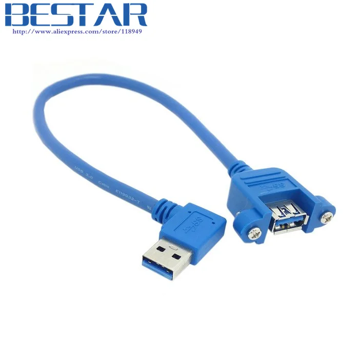 25cm 90 grados ángulo recto USB 3,0 A macho a hembra Cable de extensión con montaje tipo tornillo
