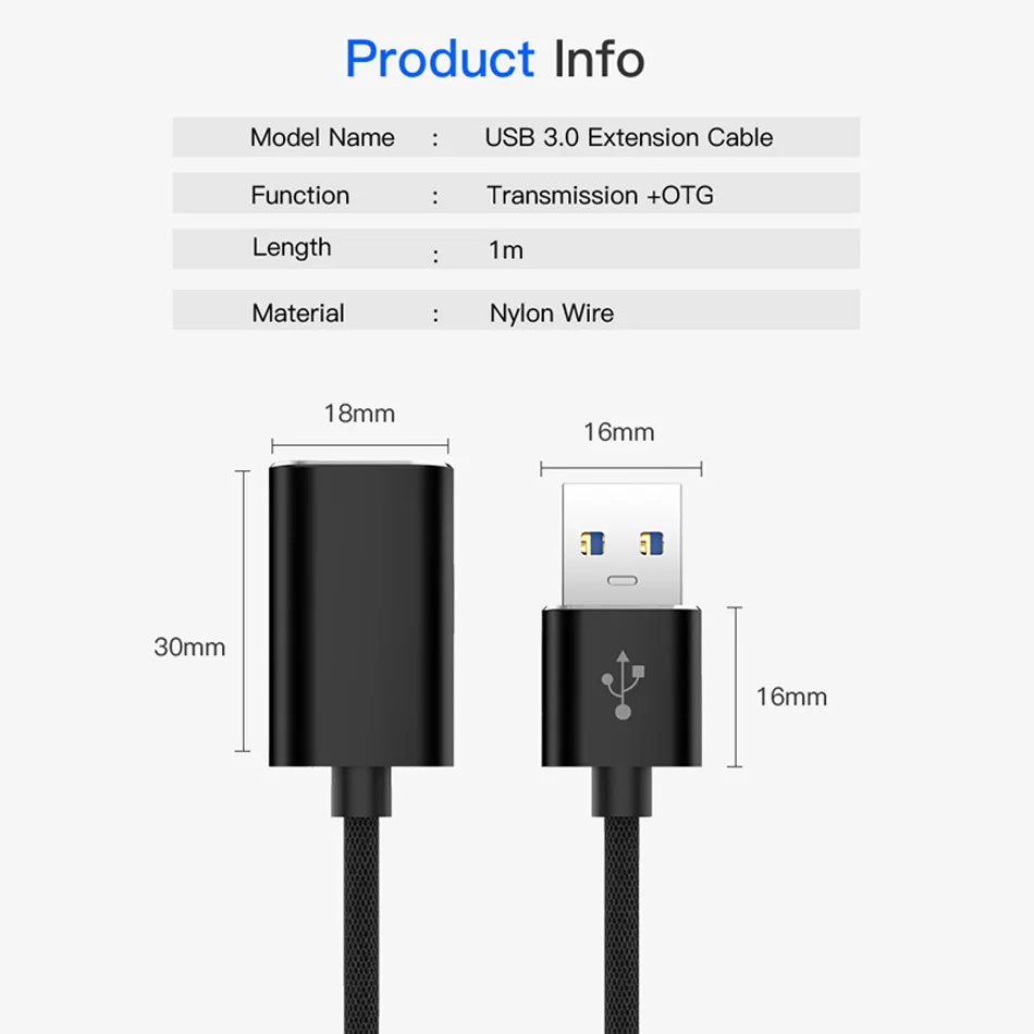 Cable de extensión USB 3,0 Cable extensor macho a hembra velocidad rápida USB3.0 Kable extendido para ordenador portátil extensión USB Cable de 3m 2m 1m