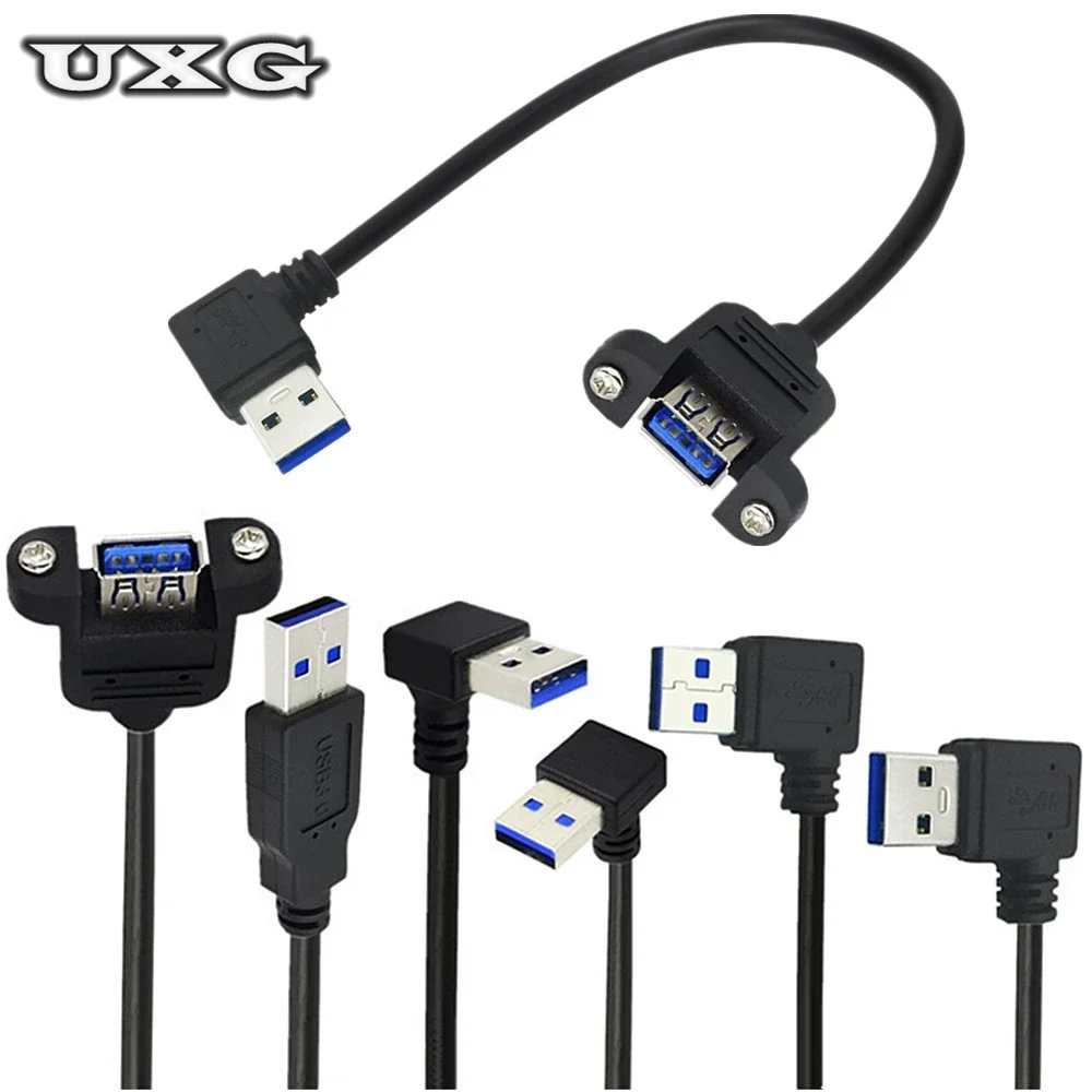 Comprar Cable de extensión USB 3,0 de codo de 90 grados, lámina de doble blindaje macho a hembra + trenzado con montaje en Panel de tornillo, 30cm, 60cm, 1m, 1,5m, 3m