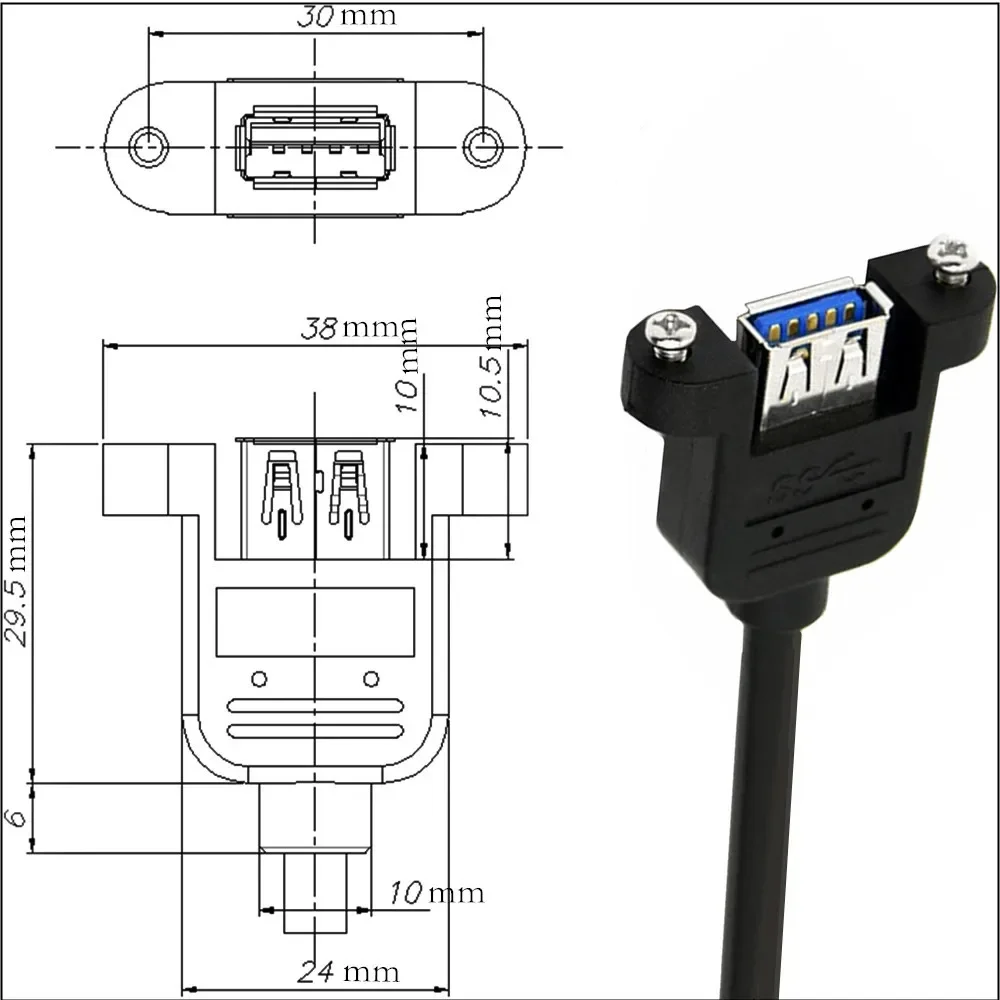 Codo de 90 grados Codo macho USB3.0 a línea de extensión hembra con orificios para tornillos y orejas La barra colectora USB3.0 macho a hembra se puede fijar en 0,3 metros