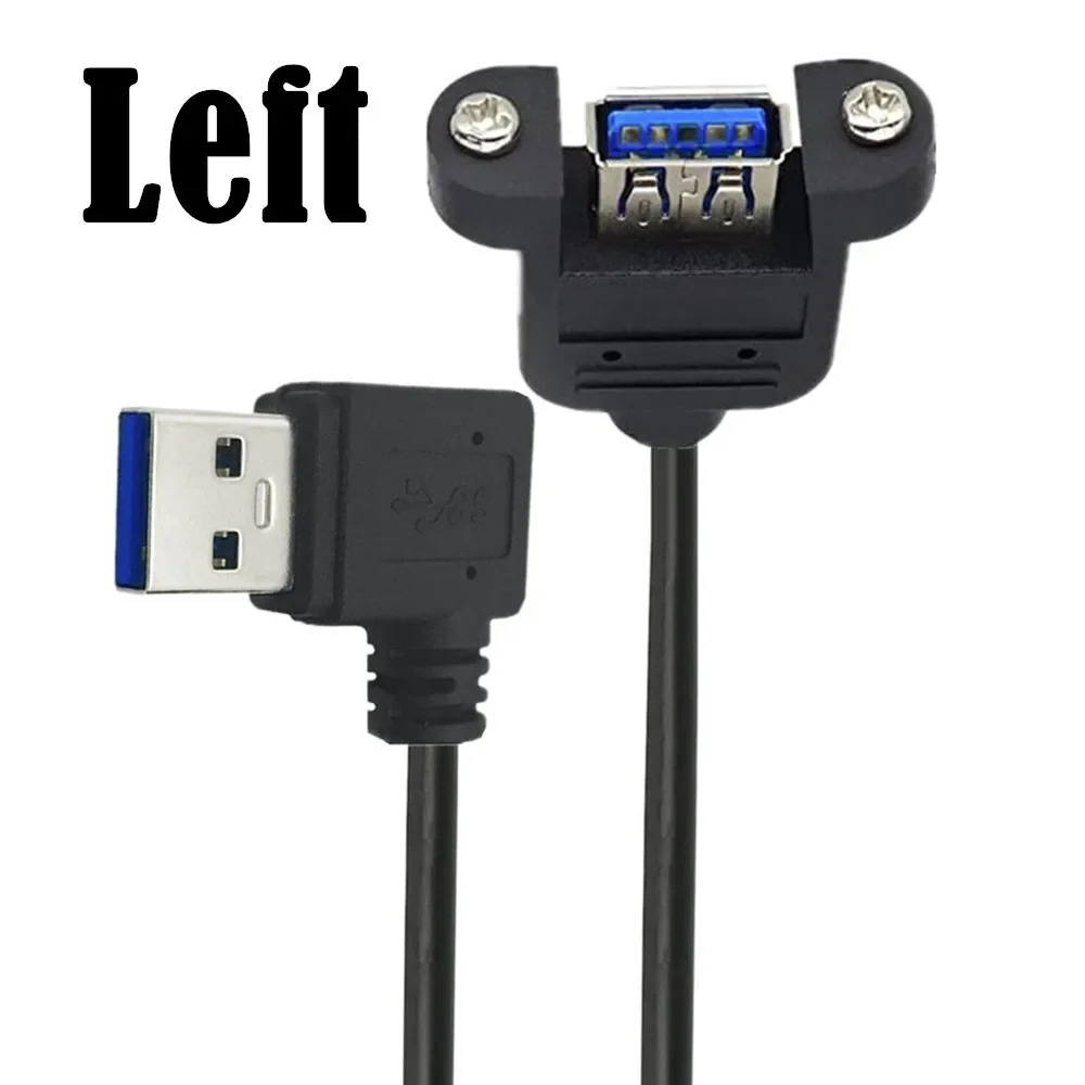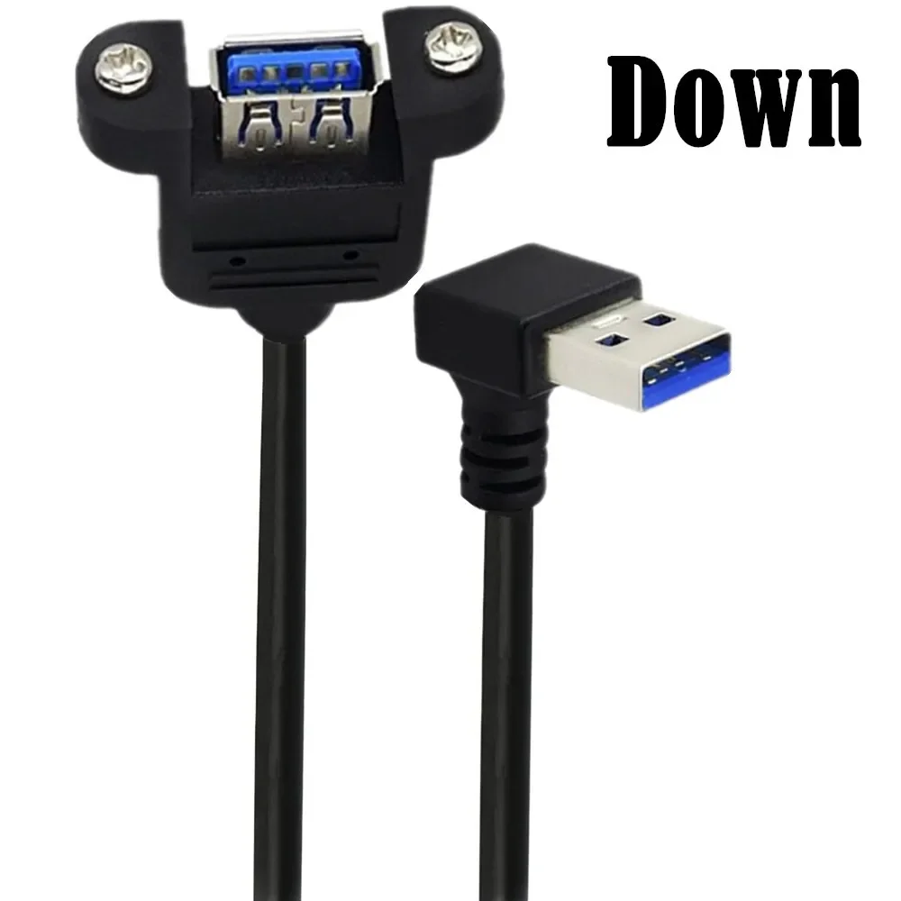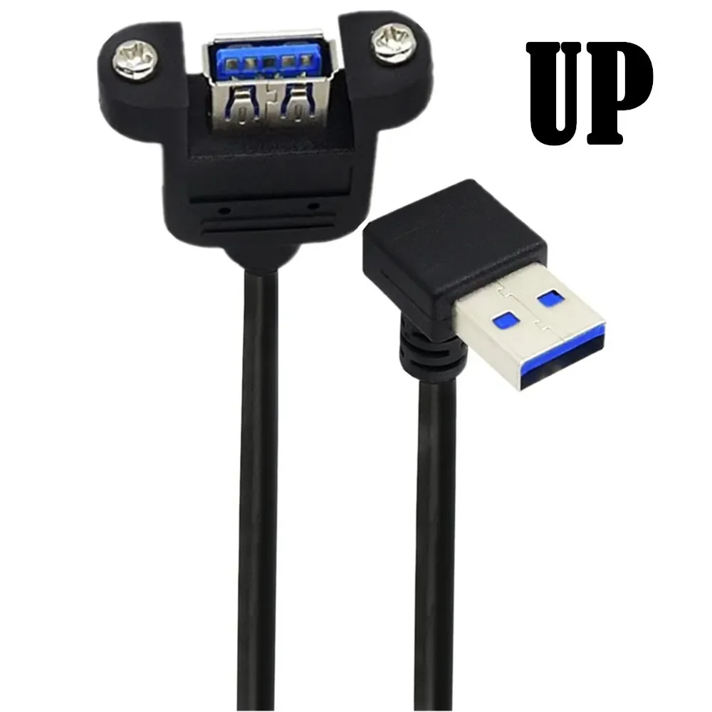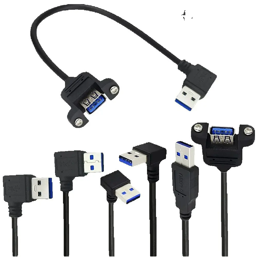 Comprar Cable de extensión USB 3,0 de codo de 90 grados, lámina de doble blindaje macho a hembra + trenzado con montaje en Panel de tornillo, 30cm, 60cm, 1m, 1,5m, 3m