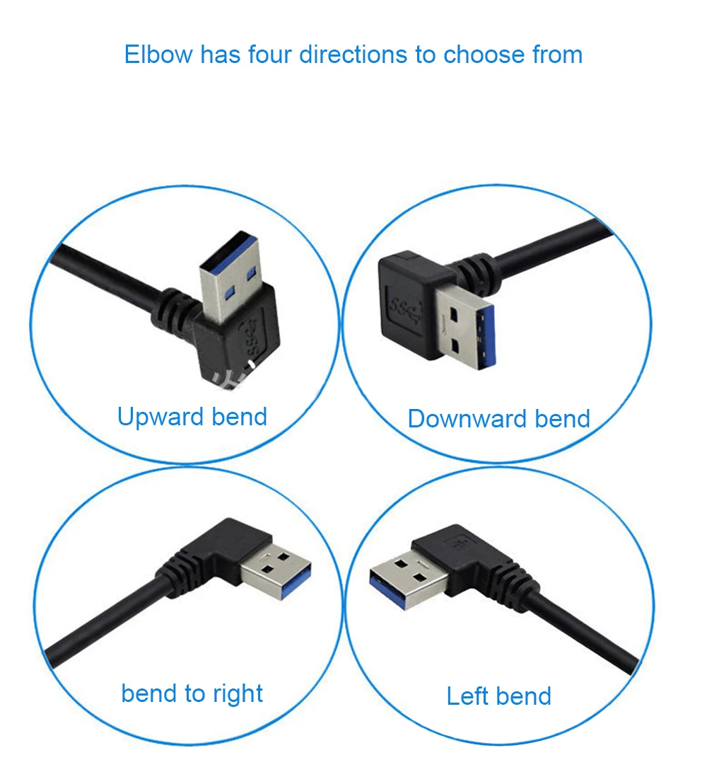 Comprar Cable de extensión USB 3,0 macho a hembra, adaptador de ángulo recto de 90 grados, arriba/abajo/izquierda/derecha, 0,2 M, 1 ~ 5 piezas