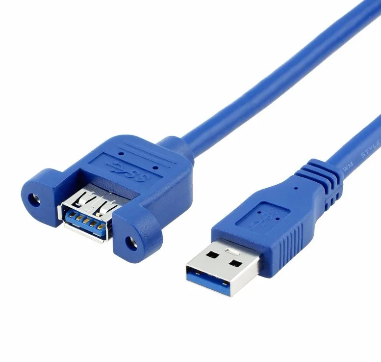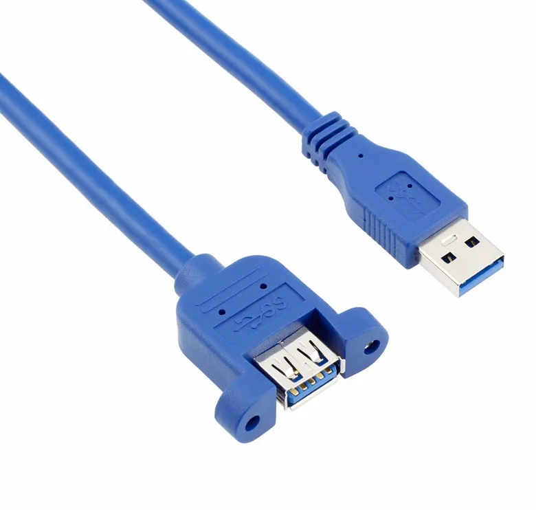 Comprar Cable de extensión USB 3,0 macho a hembra con montaje en Panel, Conector de bloqueo de agujero de tornillo, adaptador para ordenador (con tornillos)