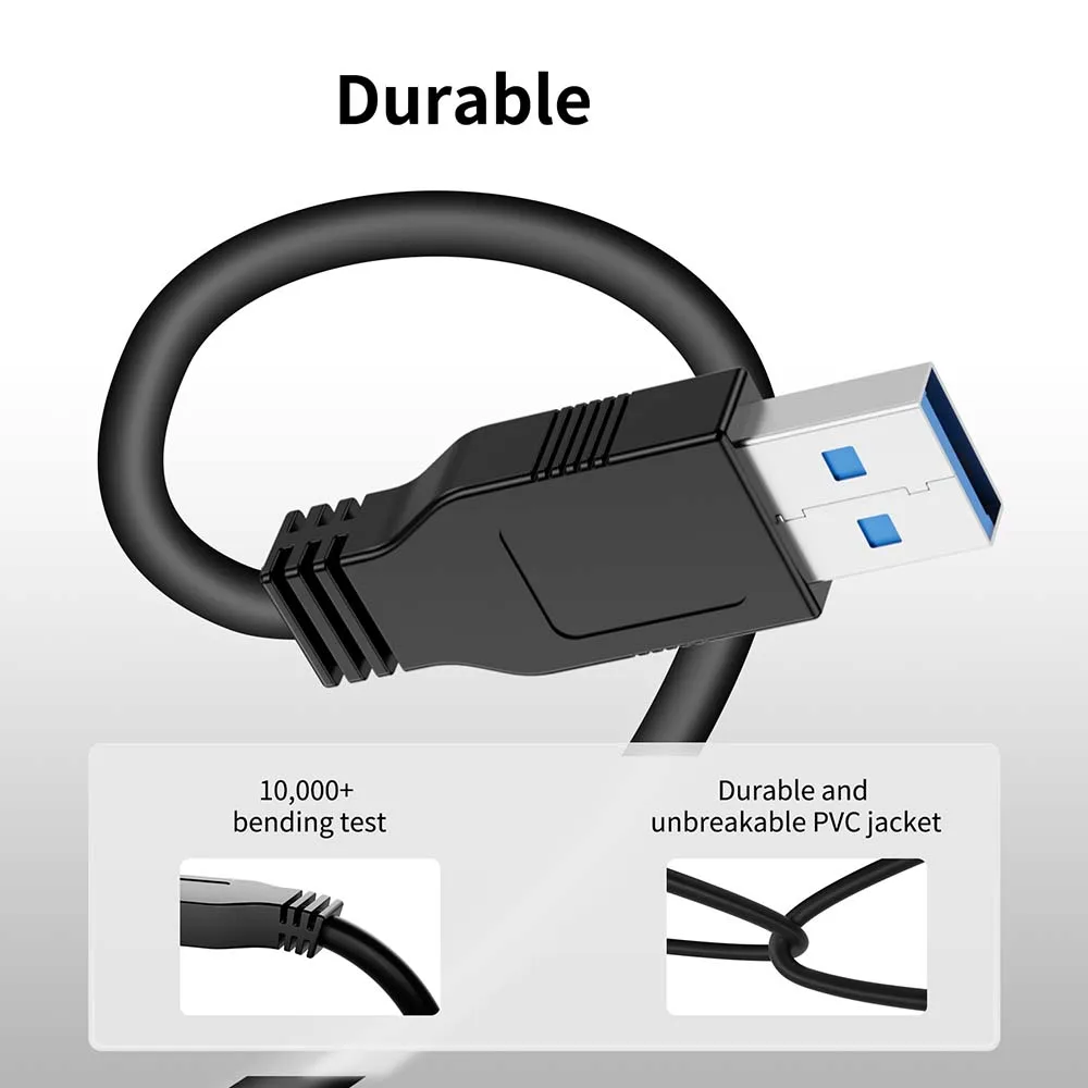 Hasta 5 GbpsSuperSpeed para cable de transferencia de datos USB 3,0, 10 veces más rápido que USB 2,0. Compatible con versiones anteriores con puertos USB 2,0 y USB 1,1 del ordenador
