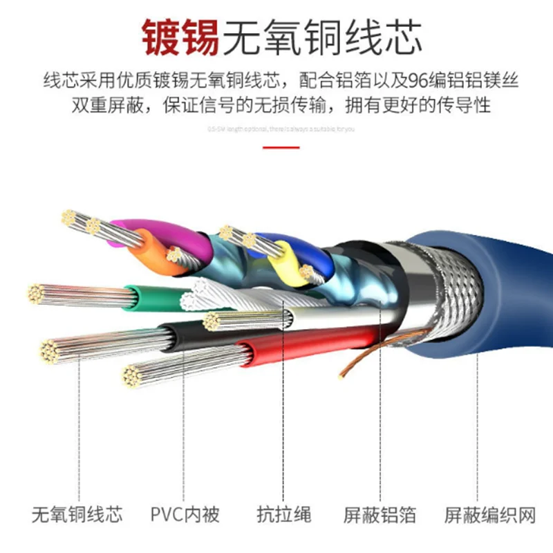 1. Uso de cable de cobre estañado de 9 núcleos, papel de aluminio y blindaje de doble capa.