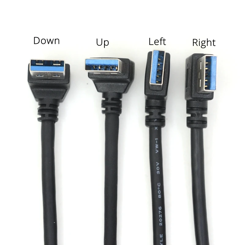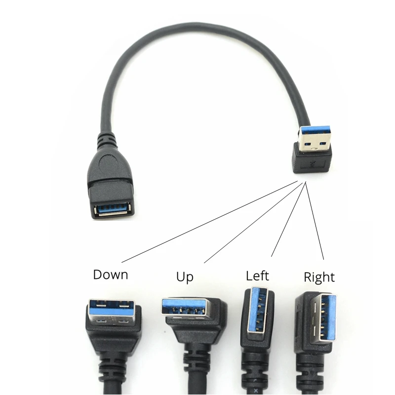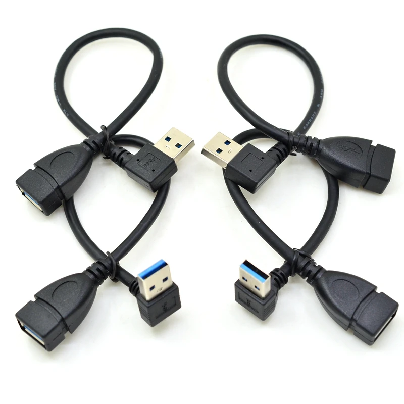 Cable de extensión USB 3,0, ángulo izquierdo y derecho, 90 grados, macho a hembra, supervelocidad, 5Gbps, Cables de carga de sincronización de datos USB
