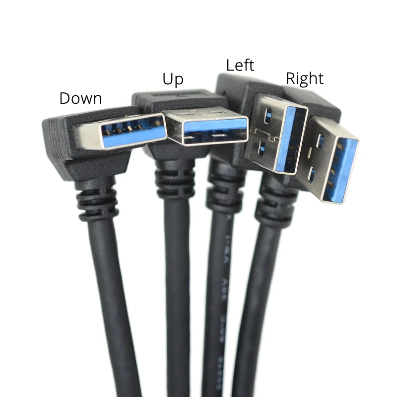 Cable de extensión USB 3,0, ángulo izquierdo y derecho, 90 grados, macho a hembra, supervelocidad, 5Gbps, Cables de carga de sincronización de datos USB