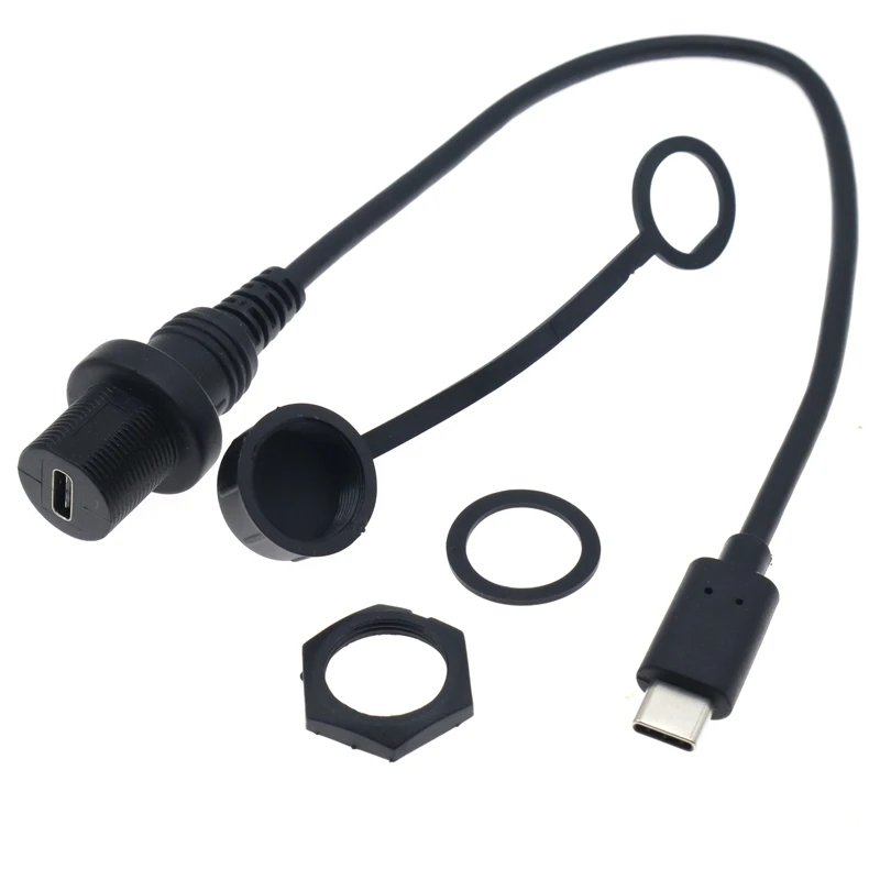 Cable de extensión de montaje en panel enbutido USB3.1 tipo c macho a hembra para salpicadero de motocicleta, camión, barco; Cable de extensión tipo c, 0,3 m;