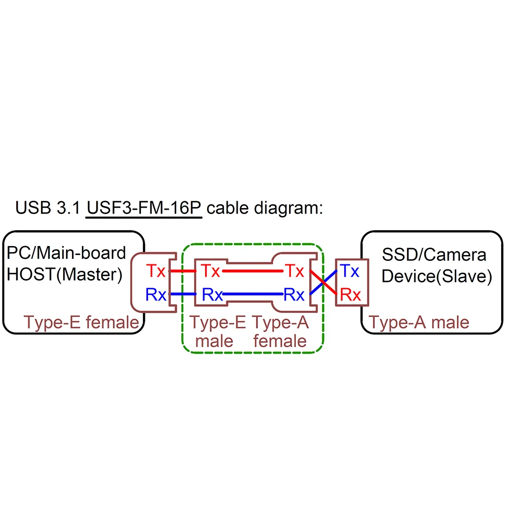 Nombre del producto: chasis hembra USB3.1 USB-A a cable de extensión tipo E incorporado.