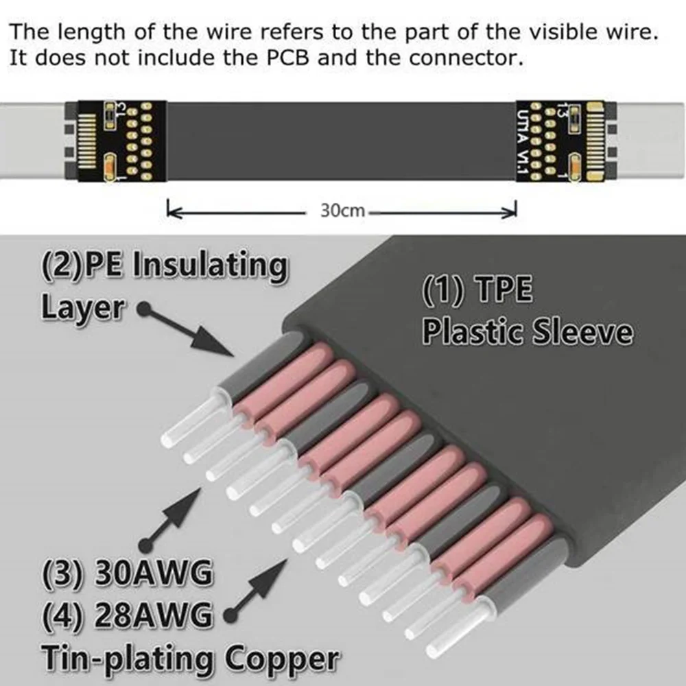 Comprar Cable de extensión USB 3,1 tipo C a tipo C, adaptador de 90 grados FPC FPV, cinta plana USB C, 3A, 10gbps, blindaje EMI, 30cm