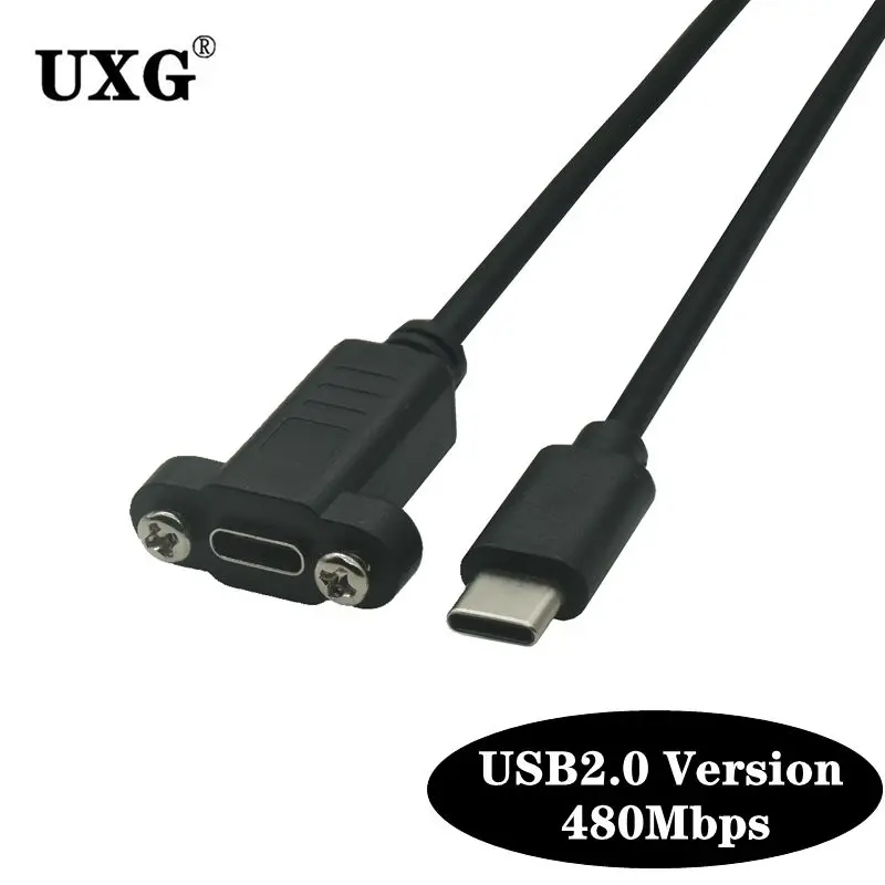Cable de extensión USB C/USB tipo c macho a hembra con tornillo de montaje en panel USBC USB3.1 Typec cable extensor hembra a macho Cable de datos