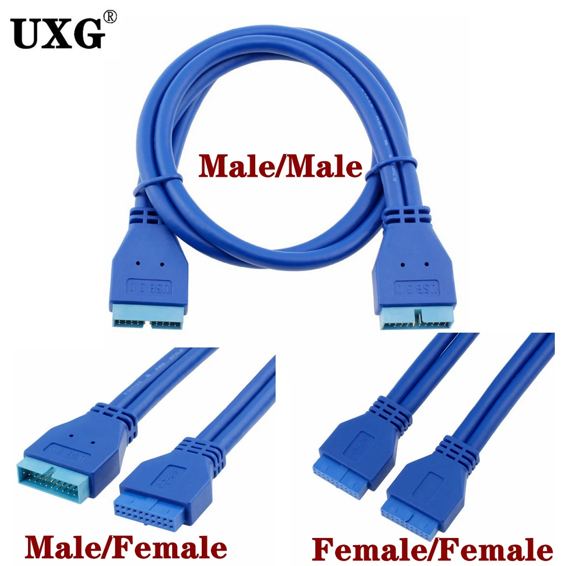 Comprar Cable de extensión USB de 5Gbps USB3.0 20 pines hembra a USB 3,0 Cable de extensión macho de 20 pines placa base extensor de Cable de 19 pines