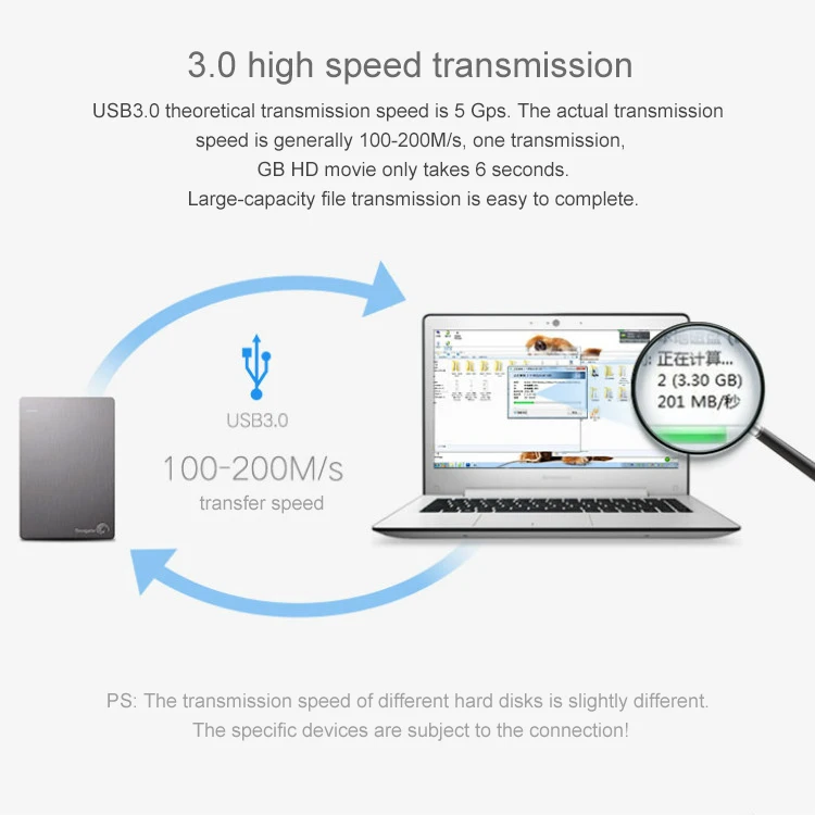 【Características】:1. Transmisión de datos Full-duplex. En USB3.0, además de las cuatro líneas principales, se agregan dos cables adicionales (cada grupo tiene un par de líneas de señal y líneas de tierra, Y las capas exteriores están cubiertas con papel de aluminio para protegerse entre sí. Un grupo se utiliza para enviar datos y un grupo se utiliza para aceptar datos. Es decir, USB3.0 puede leer y escribir a toda velocidad sincrónicamente. La versión USB anterior no admite transmisión de datos dúplex completa.2. Velocidad de transmisión ultrarrápida, también se considera SuperSpeedUSB USB3.0, lo que aumenta en gran medida el ancho de banda, hasta 5Gbps full-duplex o 625 MB/S, pero la velocidad de transmisión real es de aproximadamente 3,2 Gbps, es decir, 400 MB/S, USB2. 0 es 480Mbps semidúplex, que es 60 MB/S. USB3.0 puede transferir una gran cantidad de archivos (como películas de alta definición) a la velocidad de almacenamiento definida por el dispositivo de almacenamiento. Por ejemplo, una memoria flash que utiliza USB3.0 puede transferir 1GB de datos a un host en 15 segundos, mientras que USB2.0 tarda 43 segundos.3. Compatible con USB 3,0 (5Gbps), compatible con USB 2,0 (480Mbps) y USB 1,1 (12Mbps) especificaciones.4. Compatible con Windows 2000/2003/XP/Vista/WIN 7SP1 y Linux Apple IOS
