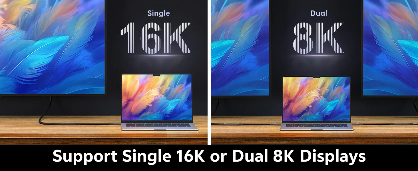 Compatibilidad con vídeo de 16K/8K: ofrece 16K@60Hz, 8K@60Hz o 4K@240Hz. Requiere compatibilidad en modo DP Alt.