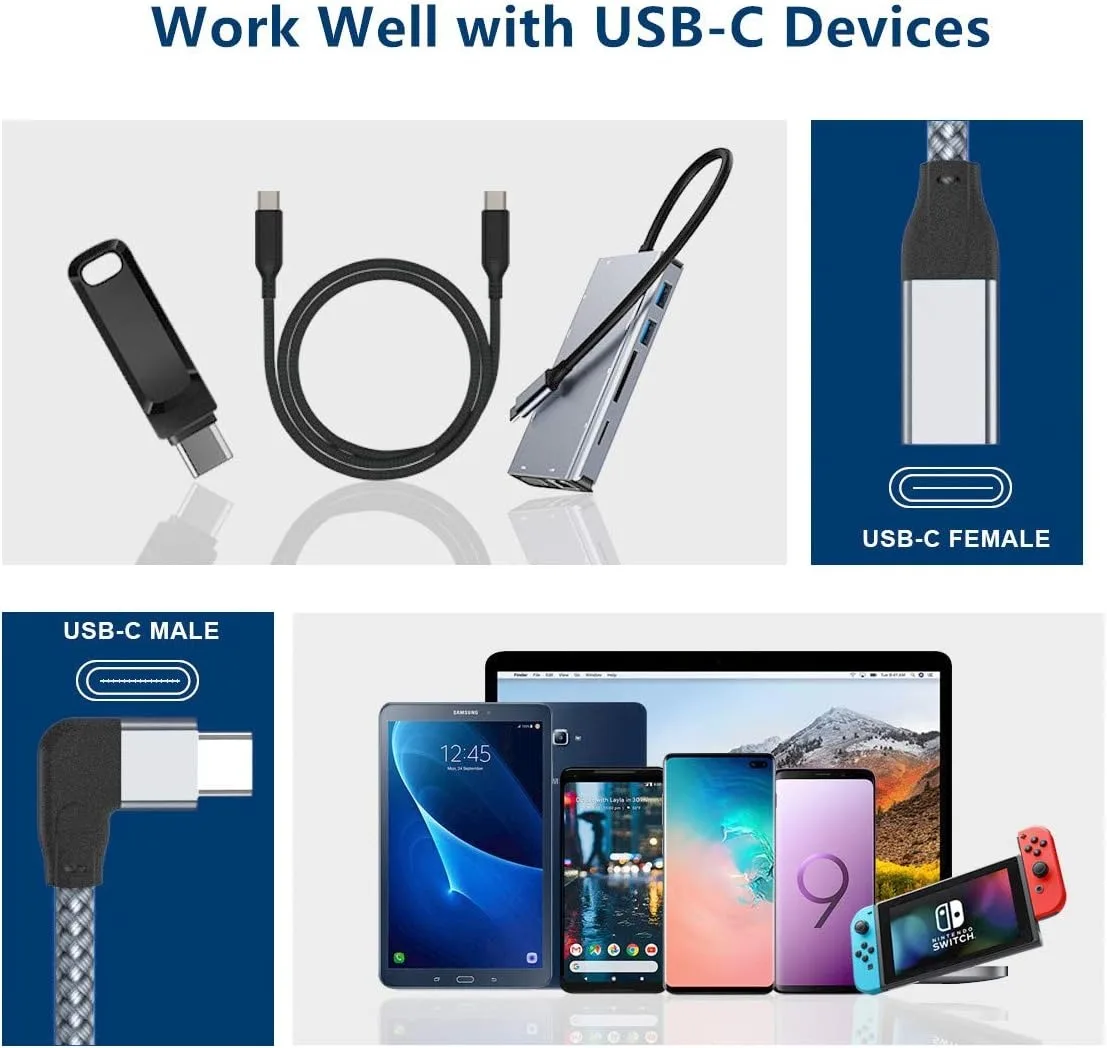 Las extensiones USB-C amplían el alcance de sus cables USBC existentes, lo que facilita la conexión de dispositivos para mayor comodidad; admite carga y transmisión de datos para audio o video (4K).
