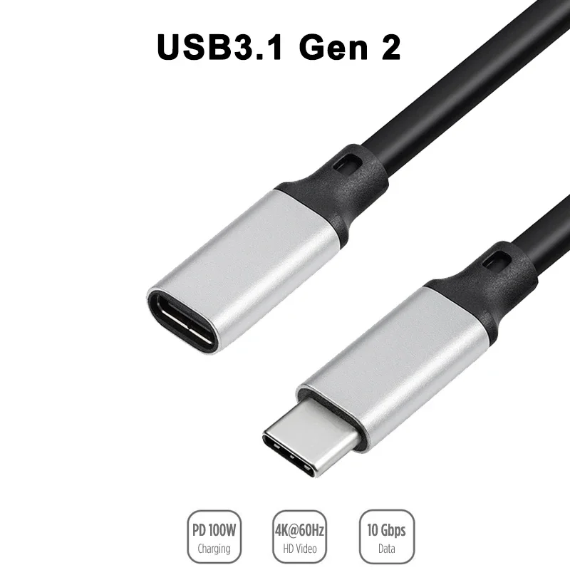 10 Gbps Gen2 USB C Verlengkabel Tipo-C USB 3.1 macho a USB-C hembra Extensión Datos 100 W Cable de carga Cable extensor Diseño reversible 0,3 m 1 m 2 m 5 m Transferencia de fecha: USB 3.1, (10 Gb/s)