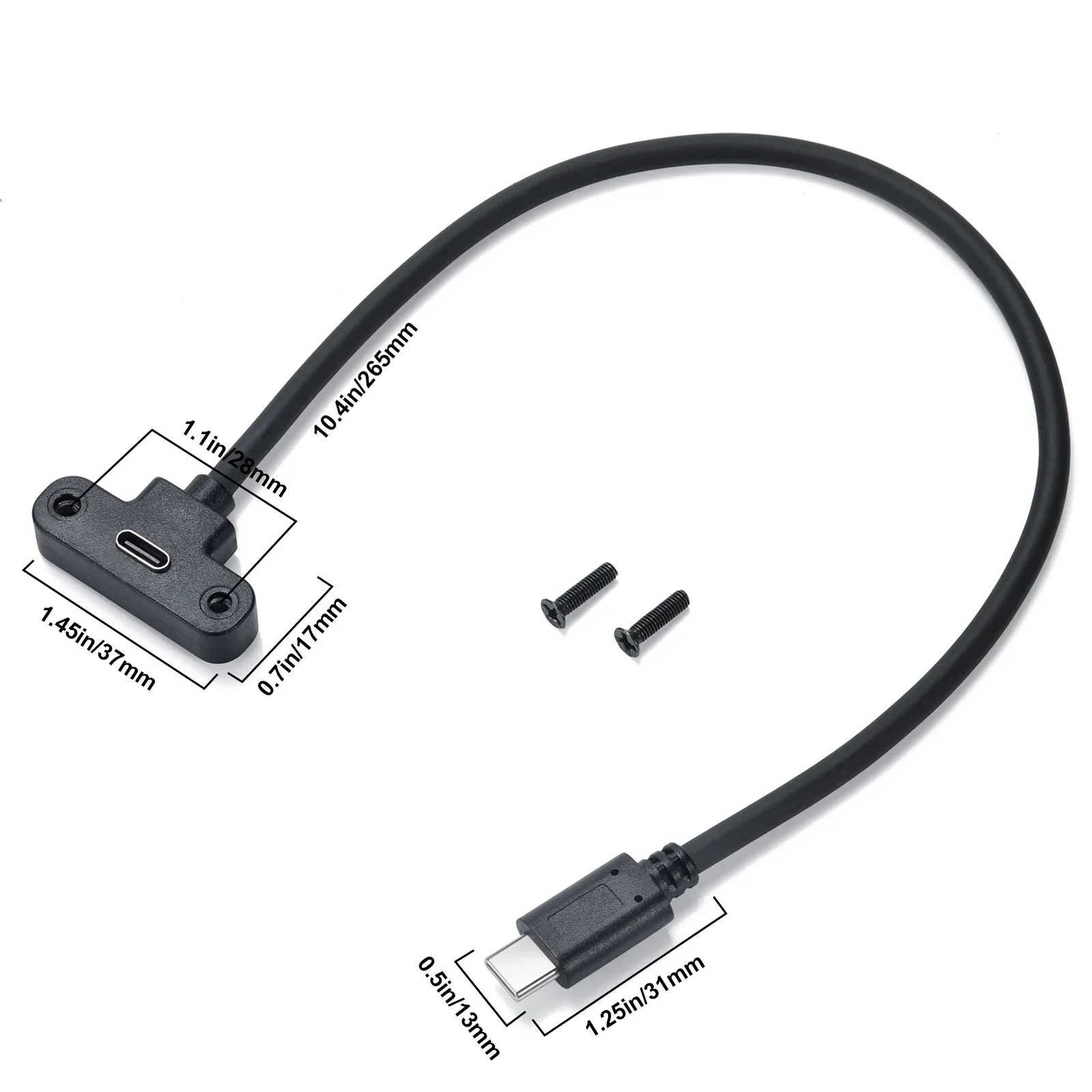 Cable de extensión USB C macho a hembra Cable de carga y sincronización extensor USB 3.1 tipo C con orificio para tornillo de montaje en panel (USB 2.0 480Mbps)
