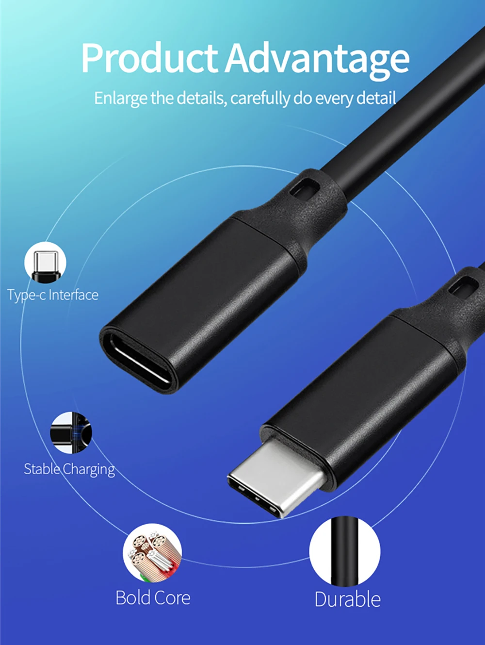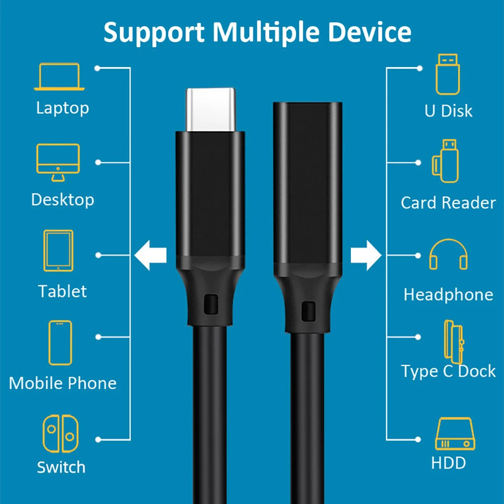 Comprar Cable de extensión USB C USB 3,2 Gen2 macho a hembra tipo C Cable extensor PD100W 4K 20V 5A para MacBook Pro Samsung portátiles Xiaomi