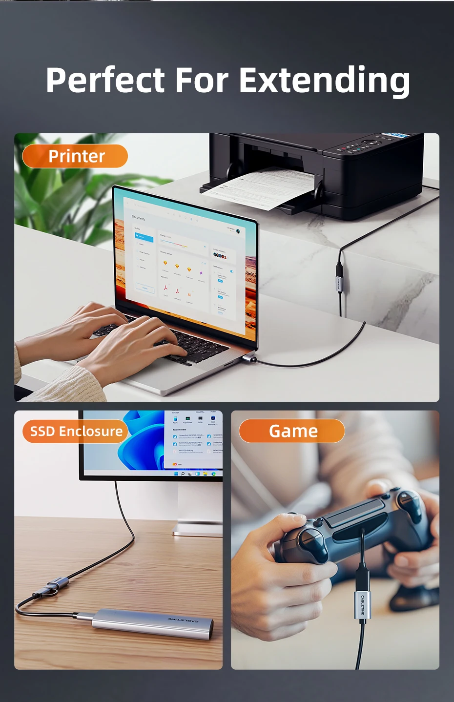 El cable de extensión USB A macho a hembra extiende el cable existente para conectarse al USB 3. 0 y USB 2. 0 periféricos como controladores de PS 4, teclados, ratones, cámaras, tableros de juegos, unidades flash USB, discos duros, Playstation, Xbox, Oculus VR, concentradores, impresoras, lectores de tarjetas, adaptadores Bluetooth, escáneres, cámaras No hay retrasos ni datos pérdida.