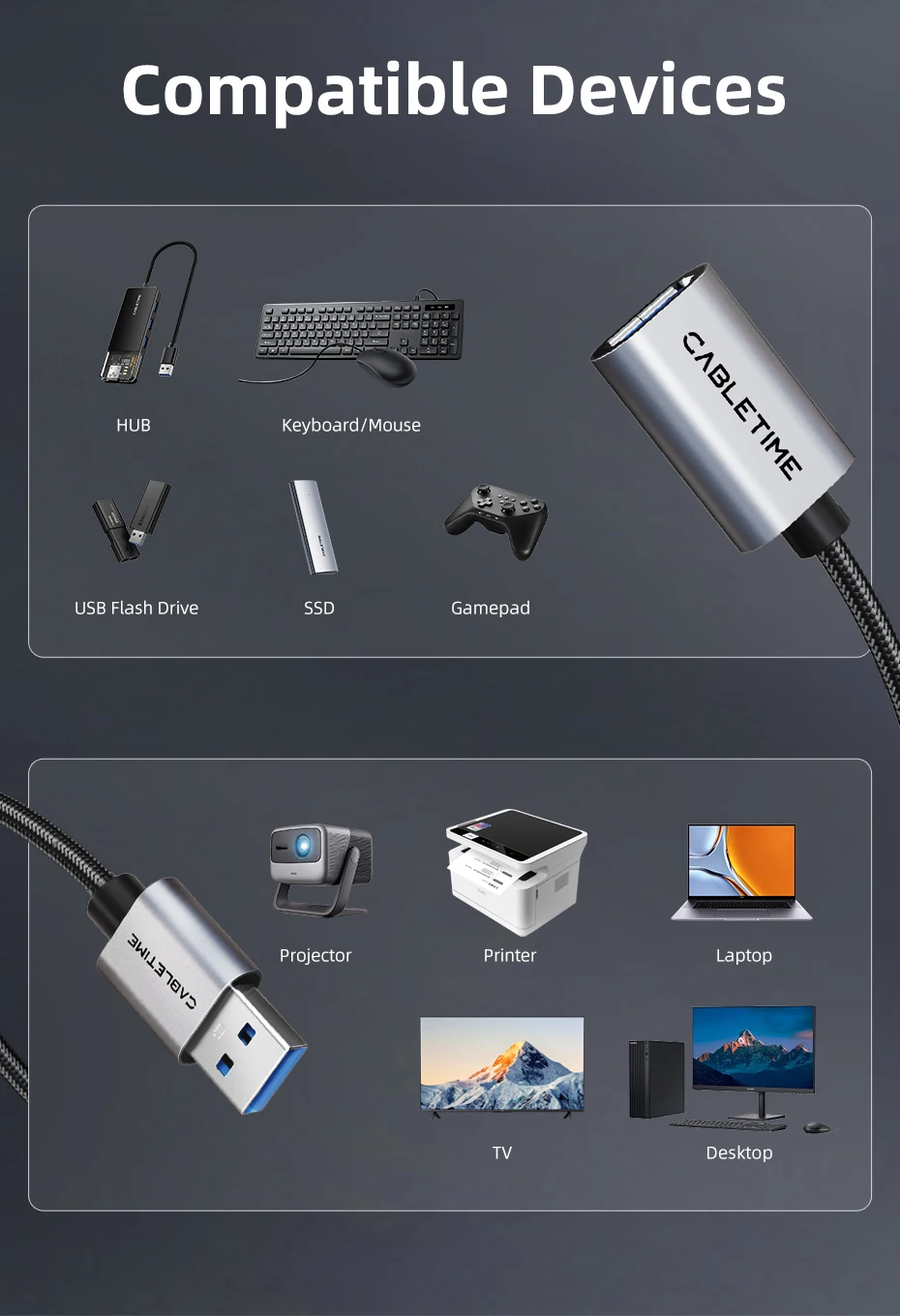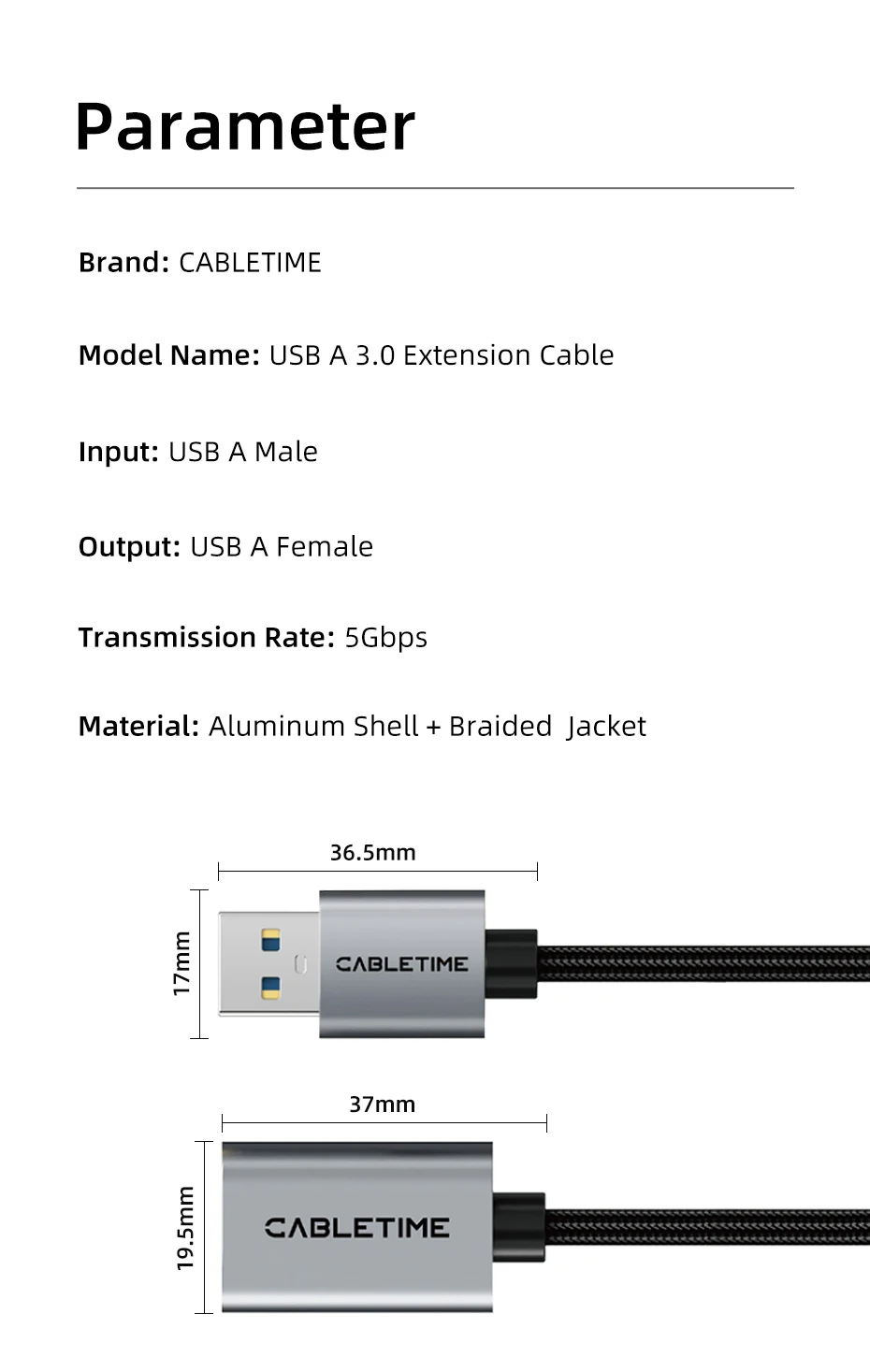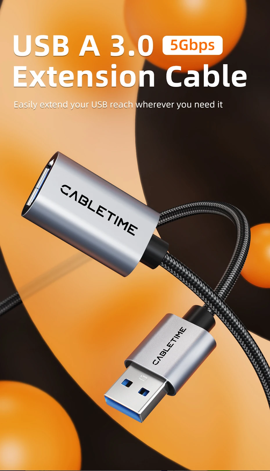 Comprar Cable de extensión USB CABLETIME Cable USB 3,0 Cable de datos extensor de 5Gbps para PC TV Smart PS4 X box Cable USB extensión rápida