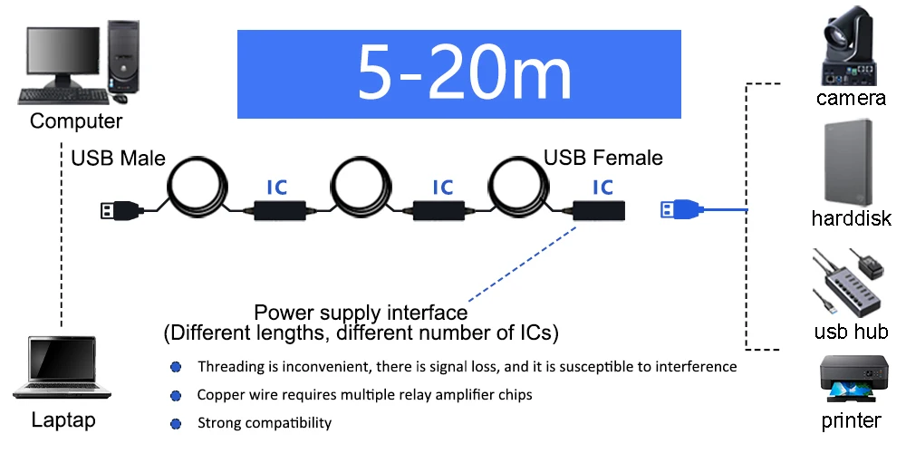 4. El cable de extensión USB 3,2 A M admite USB 2.0 480 Mbps, no admite USB 1.1, NO admite teclado/ratón, etc. Los cables de fibra óptica de señal USB 1.1 no admiten carga de energía ni función táctil en la pantalla.Soporta perfectamente audio y vídeo.