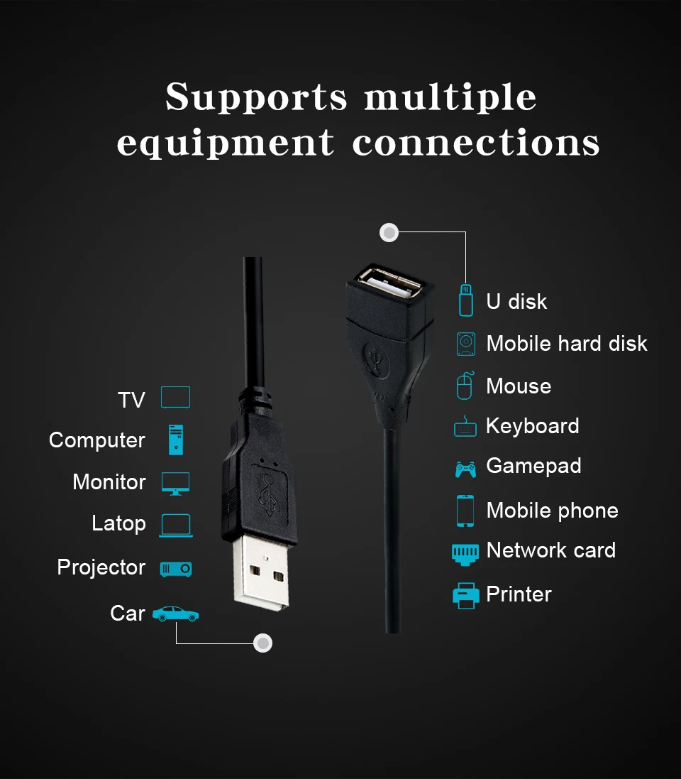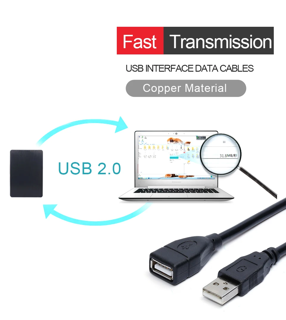 Cable de extensión USB Cable USB 2.0 para Smart TV Cables de extensión de datos de velocidad PS4 Cable macho a hembra recto.