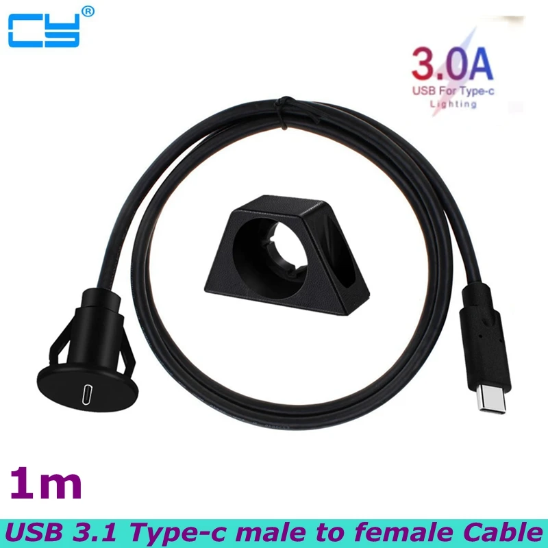 Comprar Cable de extensión USB tipo C 3,1 para salpicadero de coche, Panel de montaje macho a hembra, 5Gbps, para camión, barco, motocicleta