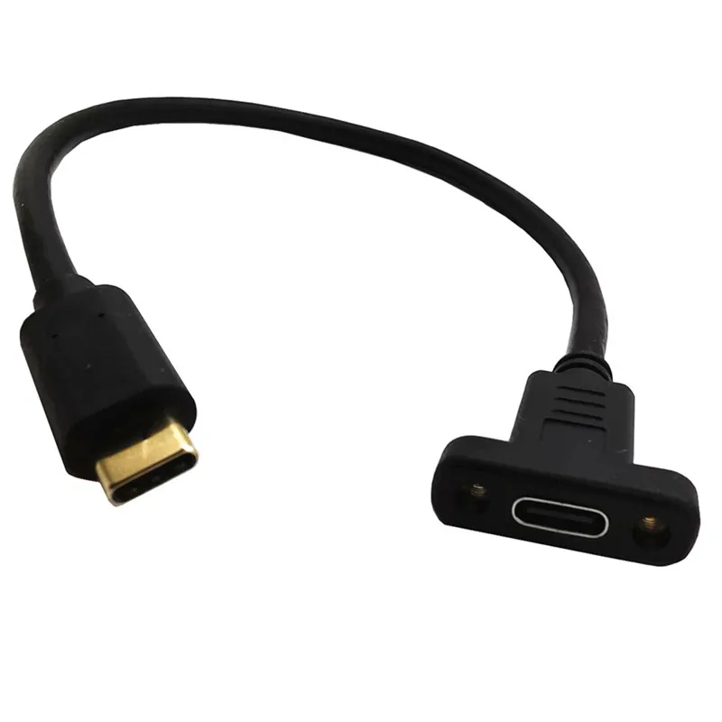 Cable de extensión USB tipo C Cable de vídeo de datos USB 3.1 Conector de cable extensor USB-C macho a hembra con montaje en panel de tornillo blindado