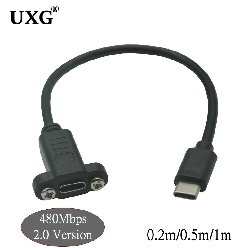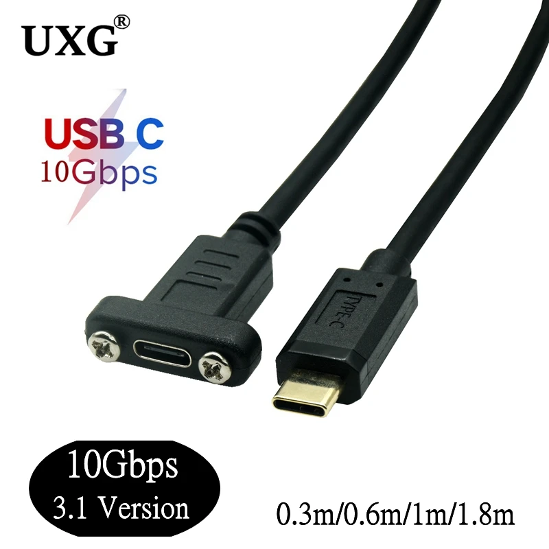 Comprar Cable de extensión USB tipo C USB 3,1, Cable de vídeo de datos, conector de Cable extensor macho a hembra con tornillo de montaje en Panel blindado, USB-C