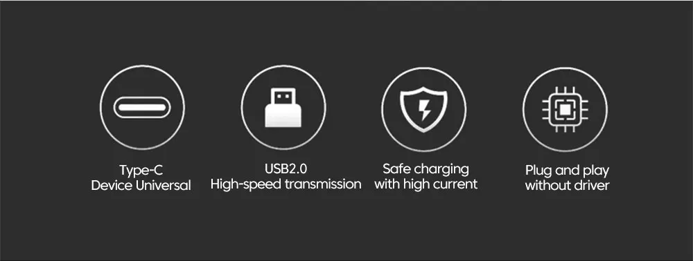 1.USB 2.0 a tipo C:Admite carga, transmisión de datos y conexión de auriculares digitales tipo C para escuchar música