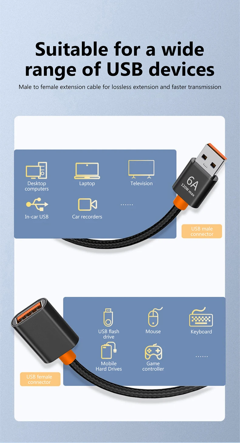 2.USB 3.0 macho a USB 2.0 hembra:Admite carga, transferencia de datos y auriculares de computadora con puerto USB
