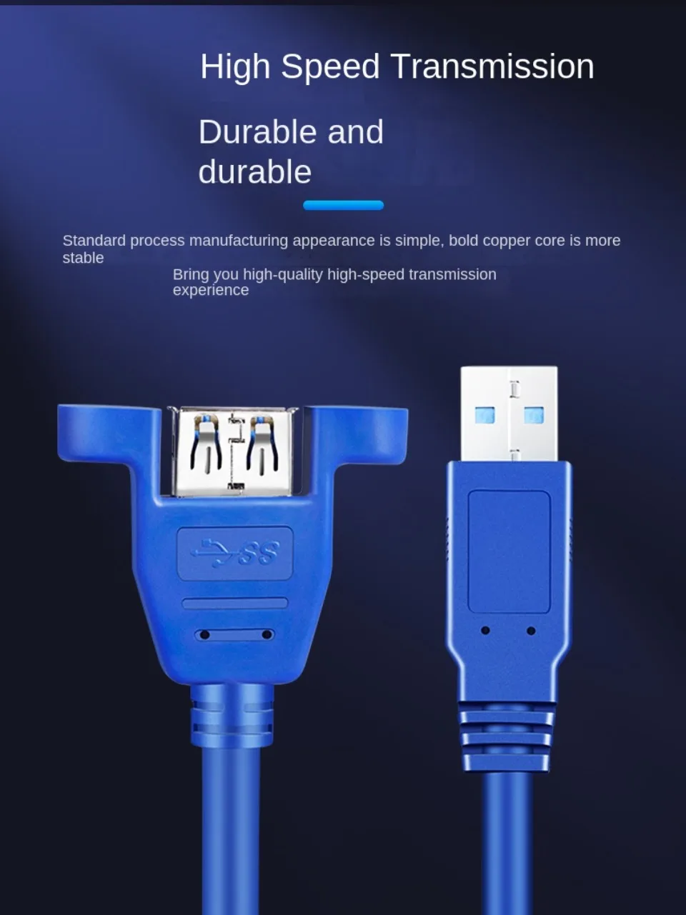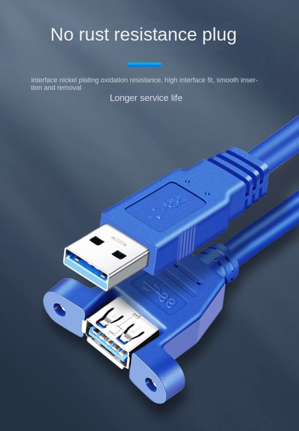 Cable de extensión USB3.0, Conector de montaje en Panel sin tornillo, macho a hembra, extensor de sincronización de datos para disco duro de impresora de PC, 3,0