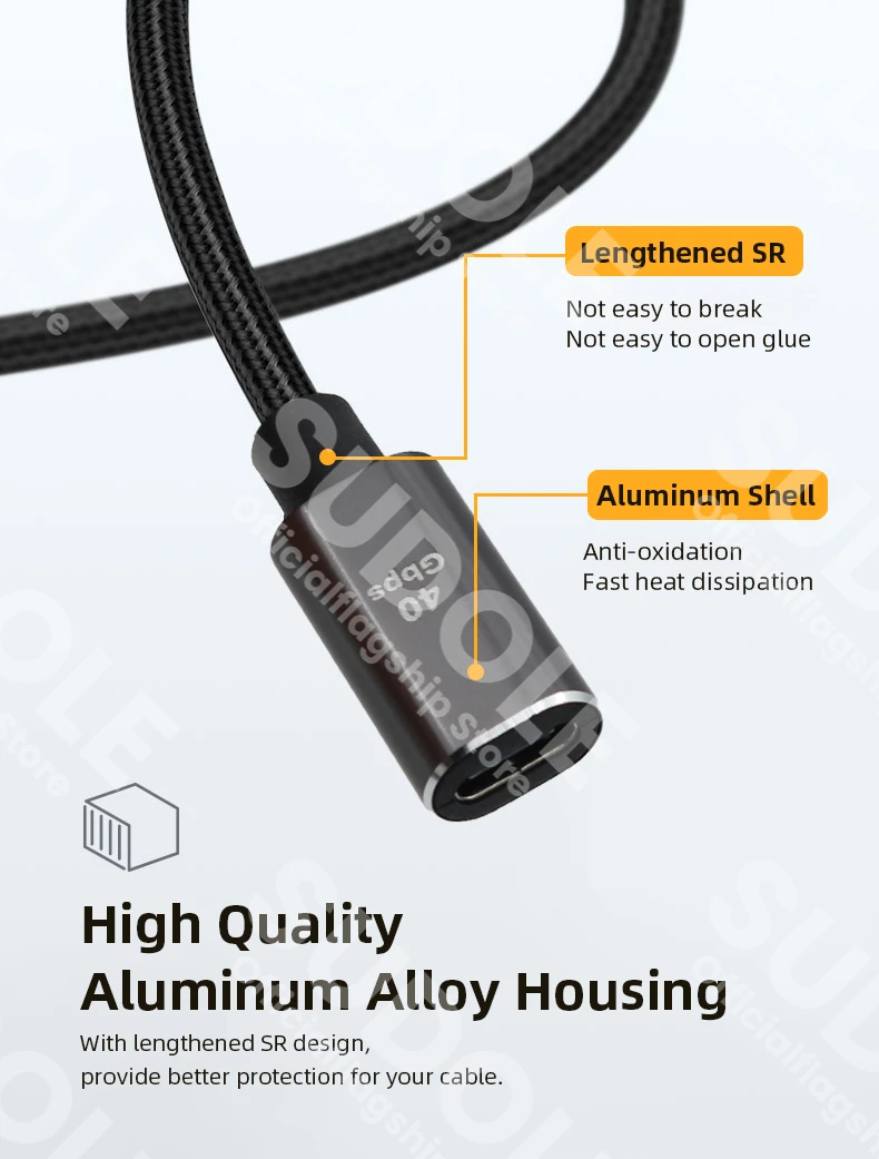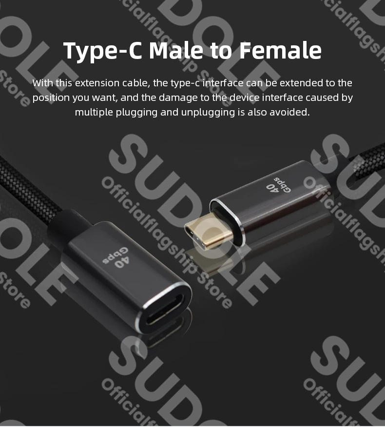 Cable de extensión USB4.0 40Gbps USB tipo C a tipo C PD 100W 5A Cable de carga rápida Thunderbolt 3 8K @ 60Hz Cable para Macbook Pro