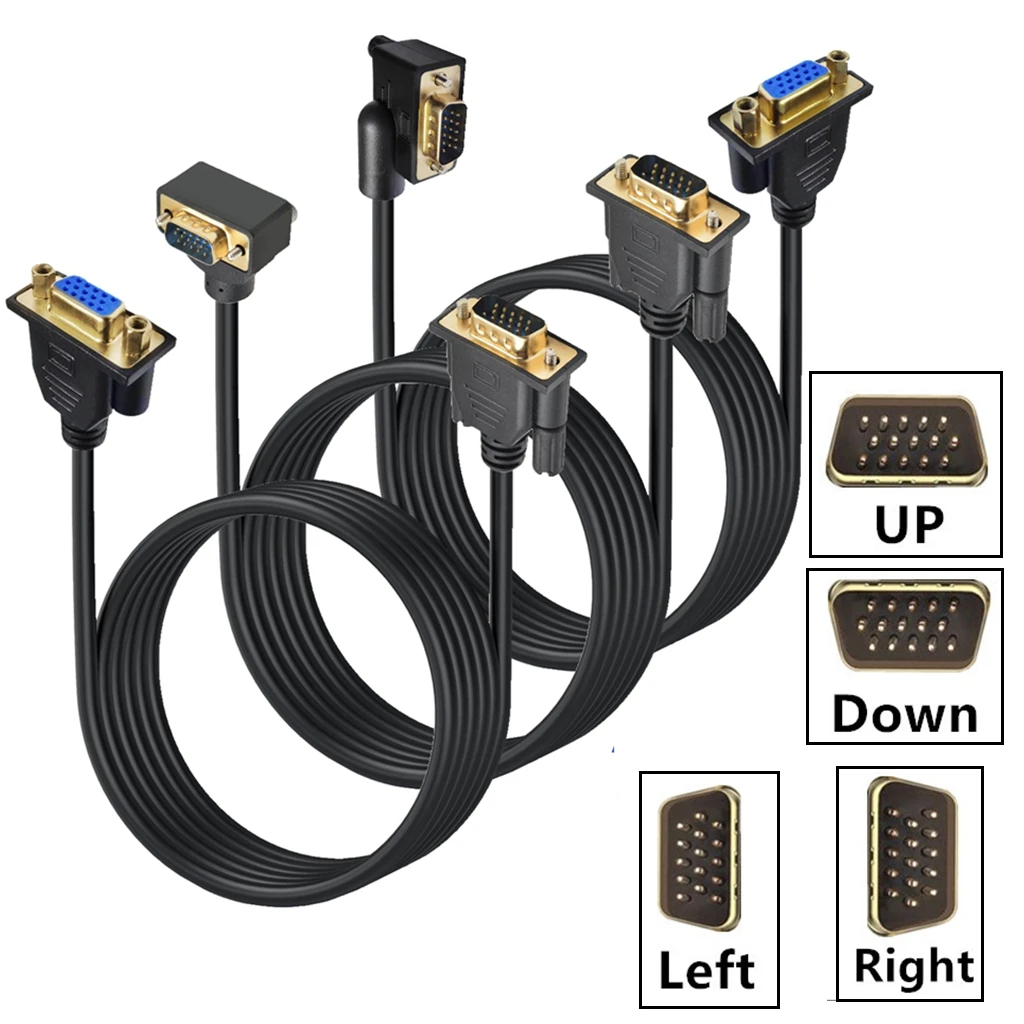 Comprar Cable de extensión VGA RGB de 15 pines macho a macho recto hembra en ángulo de 90 grados, 0,5 m-5m para Monitor, proyector, ordenador, TV Box