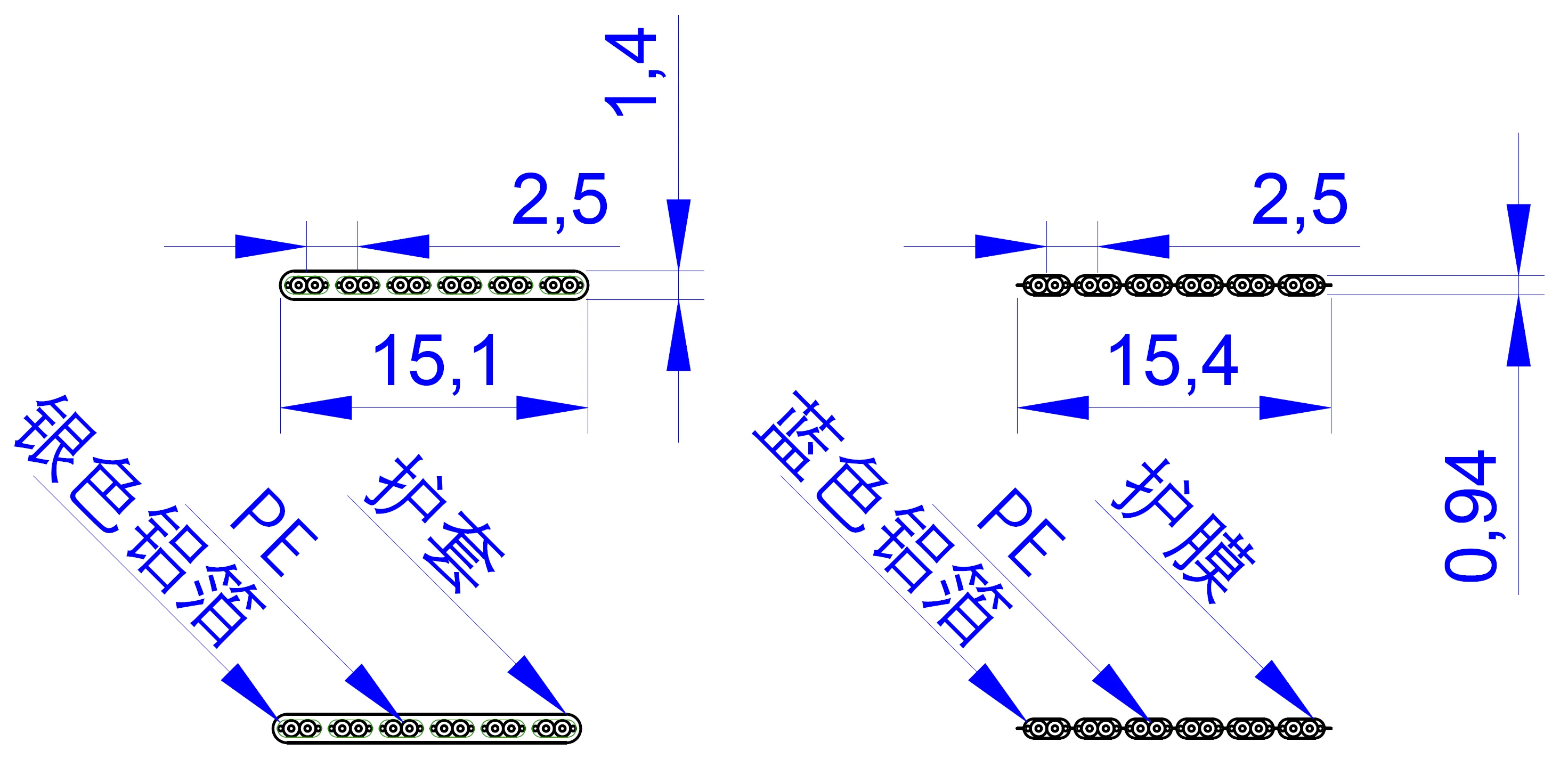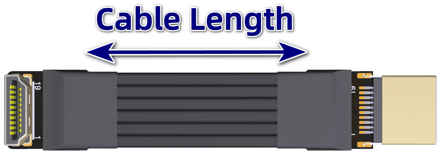 La longitud del cable que figura en nuestra tienda se refiere únicamente al cable en sí, excluyendo la PCB y los conectores.Si incluye la PCB y los conectores, agregue aproximadamente 4 cm.La longitud total entonces sería de unos 9 cm.Consulte la anotación de dimensiones para obtener una longitud de cable de 5 cm en la imagen a continuación.