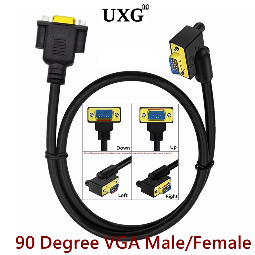 Comprar Cable de extensión de vídeo VGA macho y hembra, Cable HD de 90 grados, 0,5 M, 1,5 M, para Monitor de ordenador, proyector, TV, Etc.