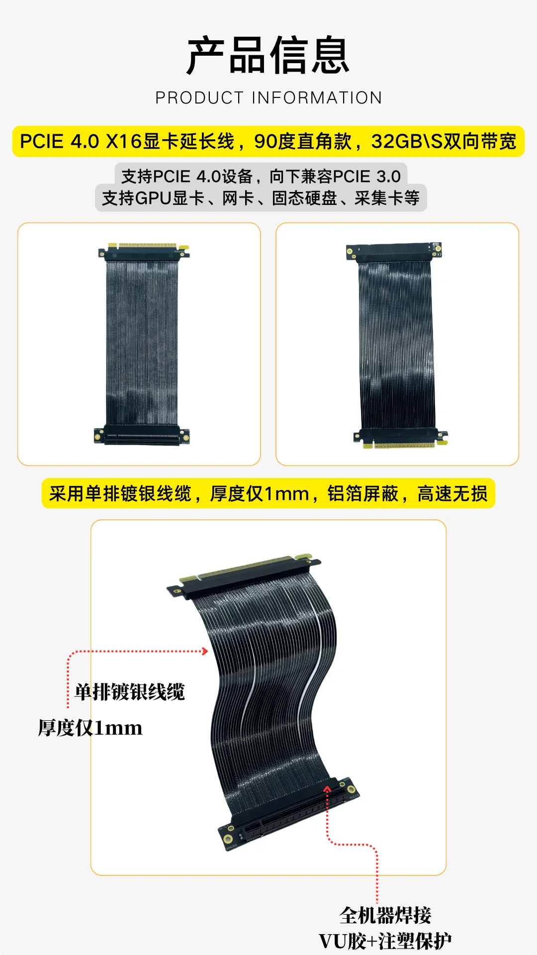 1, Cable de extensión de tarjeta gráfica PCIE 4.0 X16,