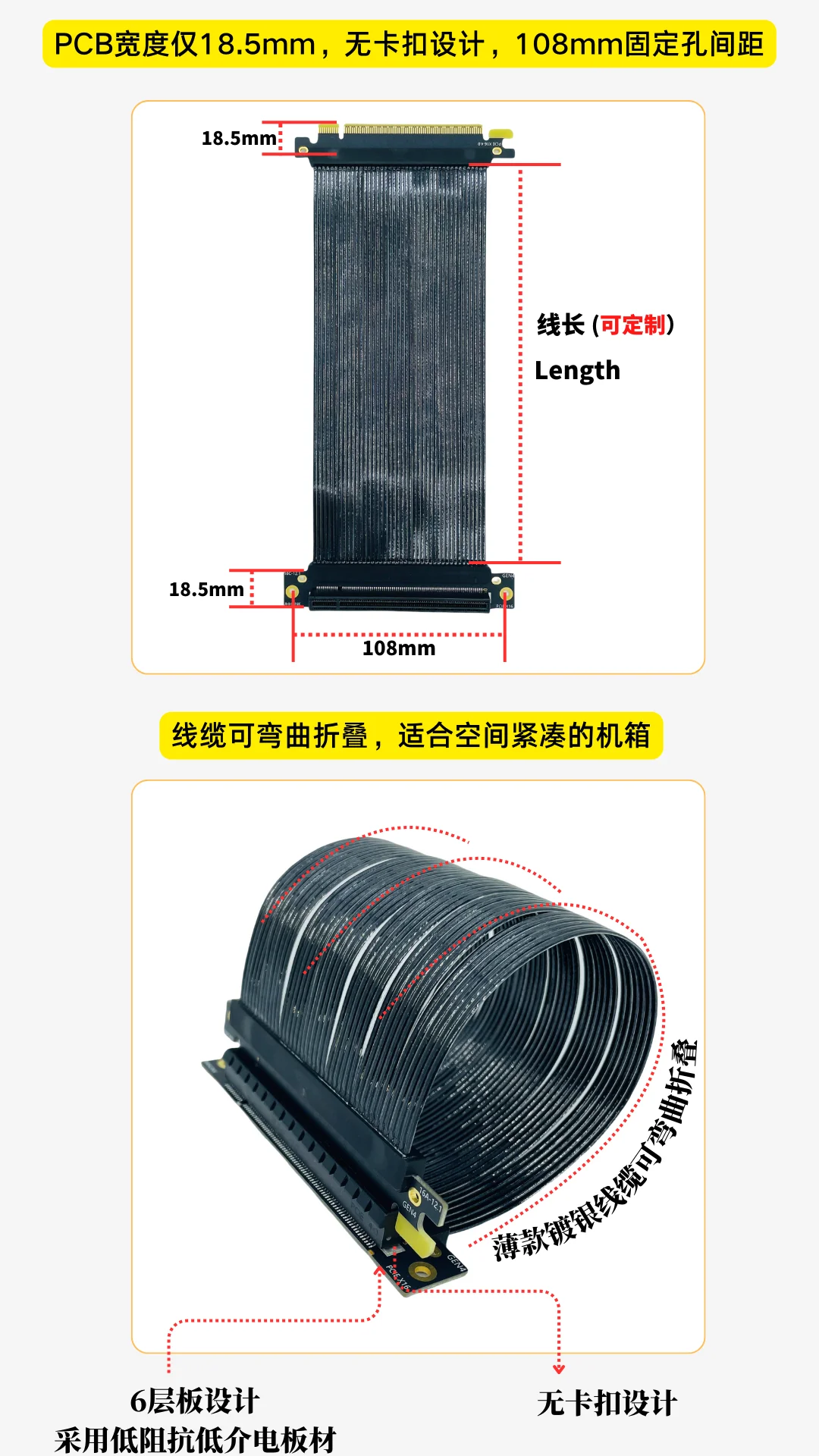 6, el cable se puede doblar y doblar, adecuado para chasis espaciales compactos.
