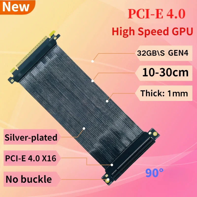 Comprar Cable extensor blindado para tarjeta gráfica PCI-E 4,0 X16, ángulo recto de 90 grados, 108mm, PCB GEN4, Cable plateado sin pérdidas de alta velocidad