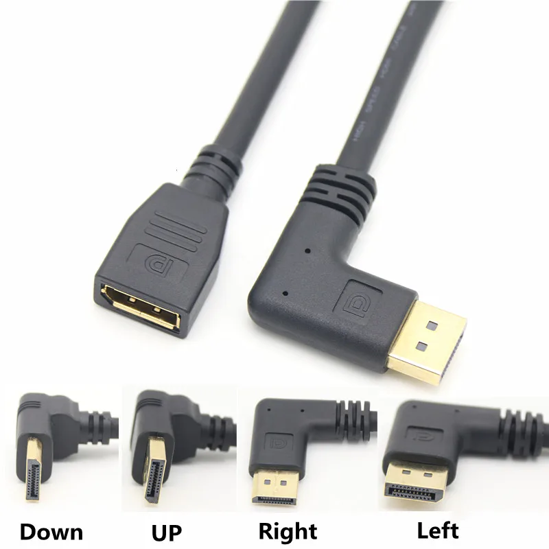 Comprar Cable extensor Displayport macho a hembra, curvatura izquierda y derecha de 90 grados, puerto de visualización DP V1.2, 30cm