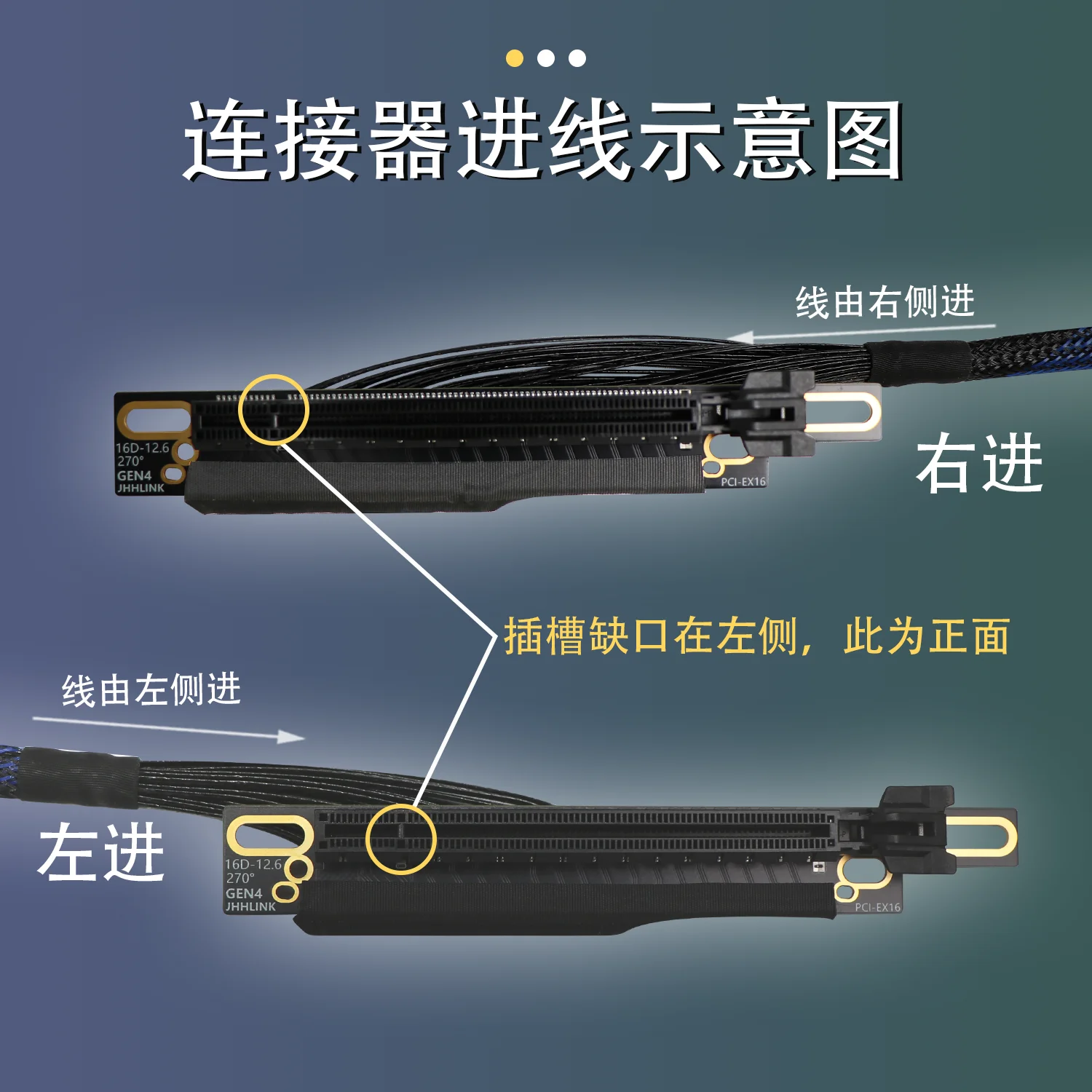 4.El cable sale desde el extremo macho y entra desde el extremo hembra.La pequeña abertura a la izquierda es la dirección positiva.