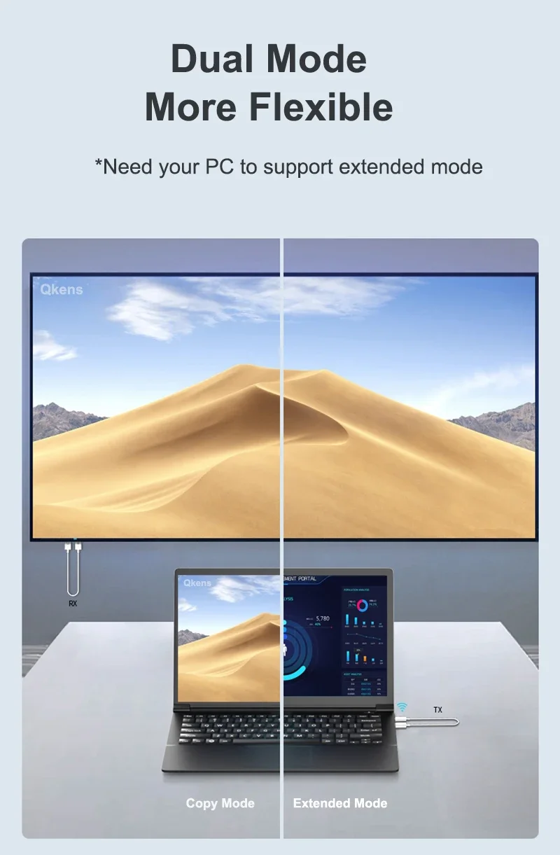 1. Transmisión de video y audio HDMI a través del protocolo de transmisión inalámbrica incorporado, sin necesidad de WiFi o internet