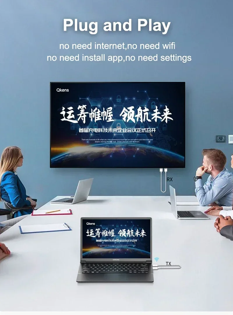 1. Transmisión de video y audio HDMI a través del protocolo de transmisión inalámbrica incorporado, sin necesidad de WiFi o internet