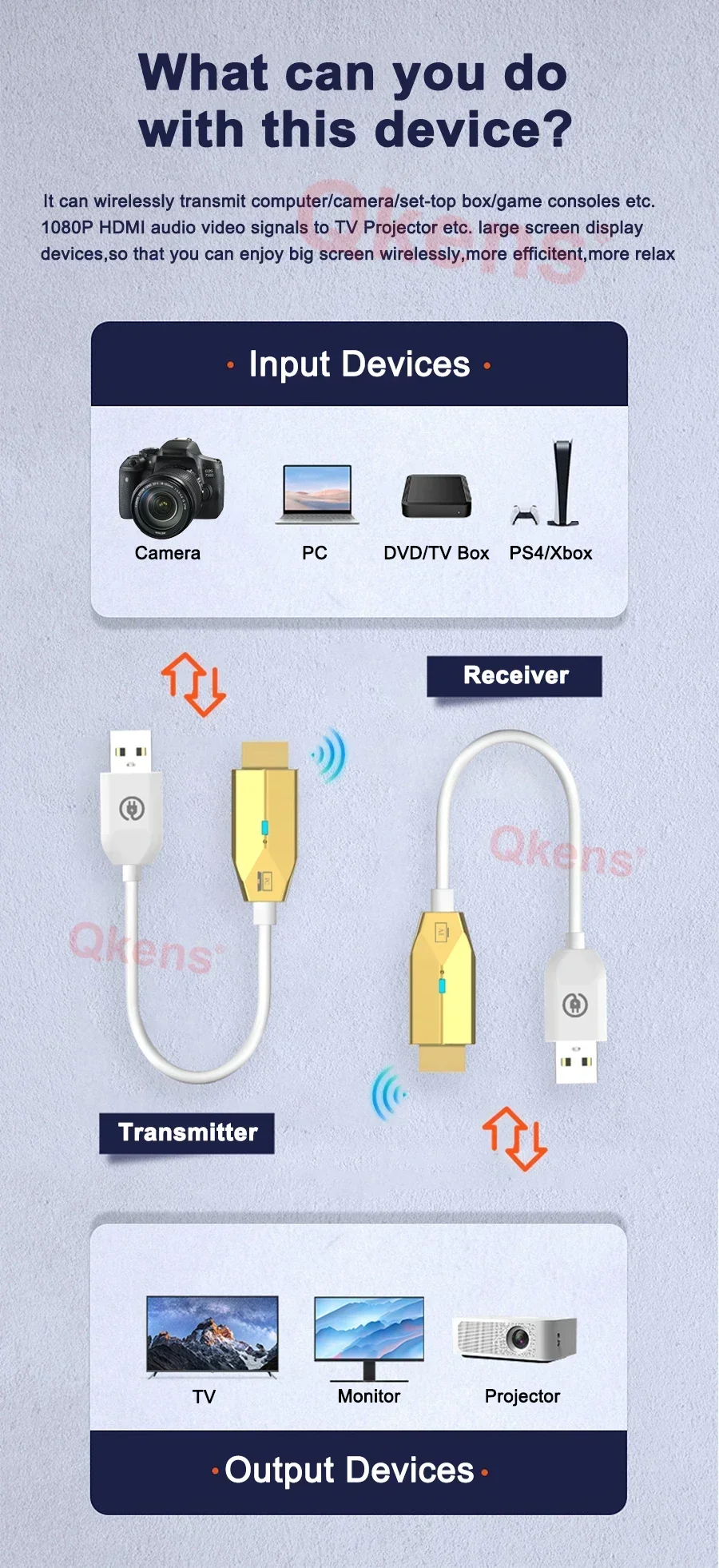 Este extensor HDMI incorporado protocolo de transmisión inalámbrica, puede transmitir de forma inalámbrica señal de audio y vídeo HD,