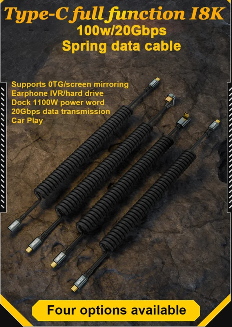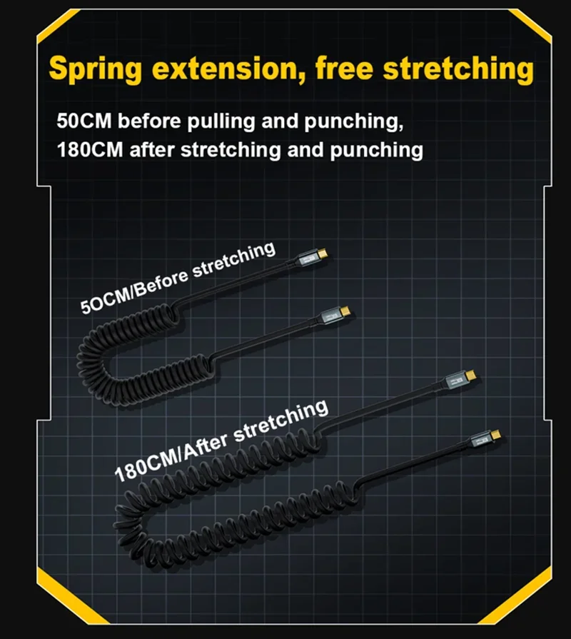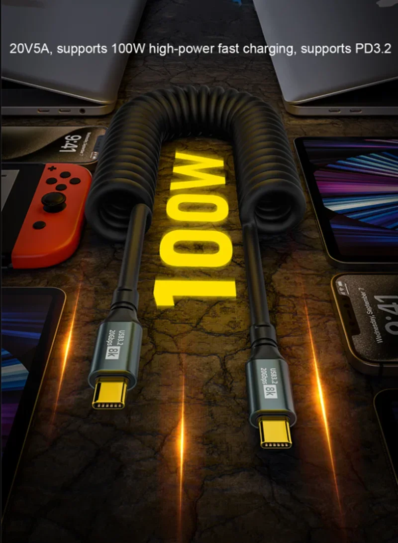 Cable extensor de resorte USB tipo C PD 100W Cable para Samsung Xiaomi Huawei teléfono cargador rápido iPhone15 Wird PD Cable de datos USB3.2 8K