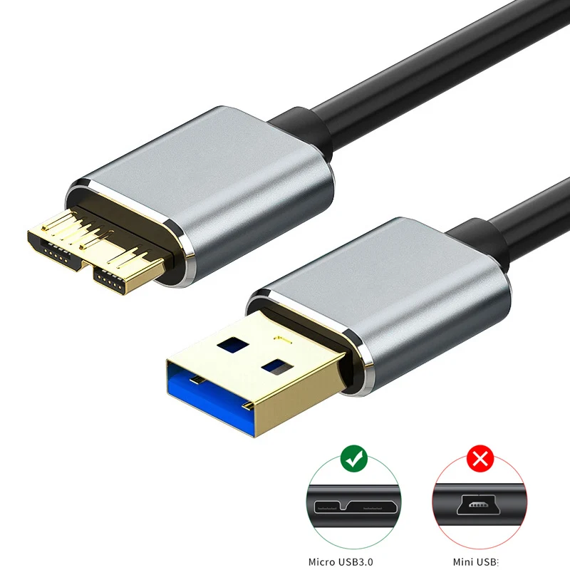 Cable externo para disco duro Cable Micro B USB 3.0 Cable de datos de carga rápida 3A para Samsung Note 3 S5 con transmisión de alta velocidad de 5 Gbps