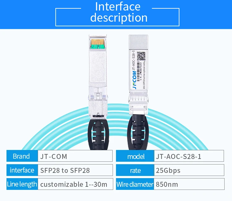 Comprar Cable de fibra de 25G SFP28 a SFP28 AOC, módulo SFP OM3, Cable óptico activo, soporte de longitud personalizada, 1m, 3m, 5m, 10m, 20m, 30m