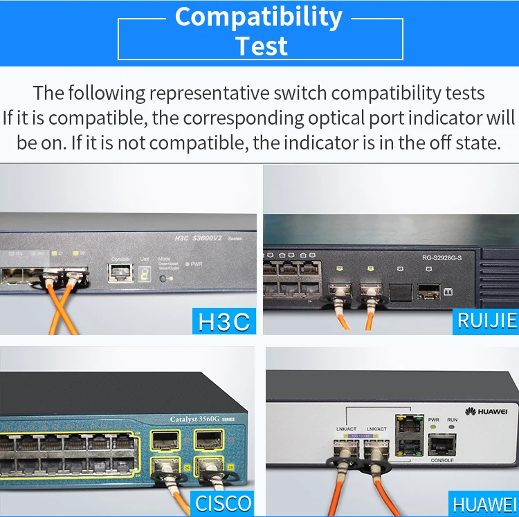 Debido a que algunas marcas de interruptores solo reconocen su propio código, déjenos un mensaje sobre la marca de su interruptor para que podamos escribir el código correspondiente en el módulo SFP