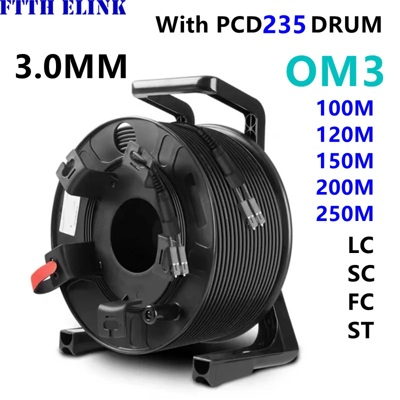 2 Core OM3 TPU Cable de conexión de fibra blindada con tambor PCD235 2C SC LC FC ST APC multimodo 2 fibras puente de fibra óptica al aire libre