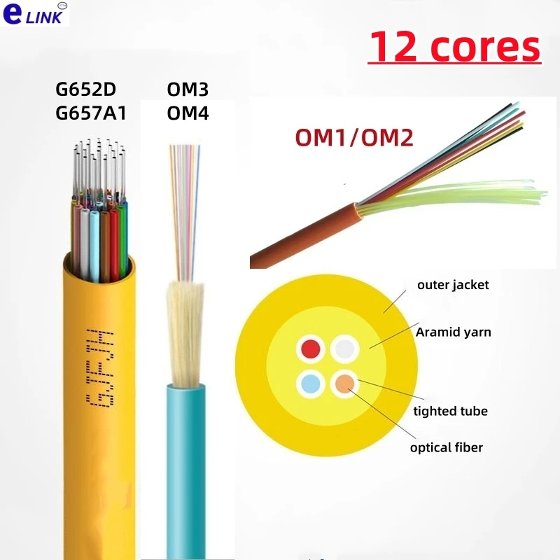 Comprar Cable de fibra óptica 100Mtr paquete de 12 núcleos GJFJV-12 interior OS1 OM1 OM2 OM3 OM4 9/125 50/125 62.5/125um SM MM 12 cables de fibras ELINK